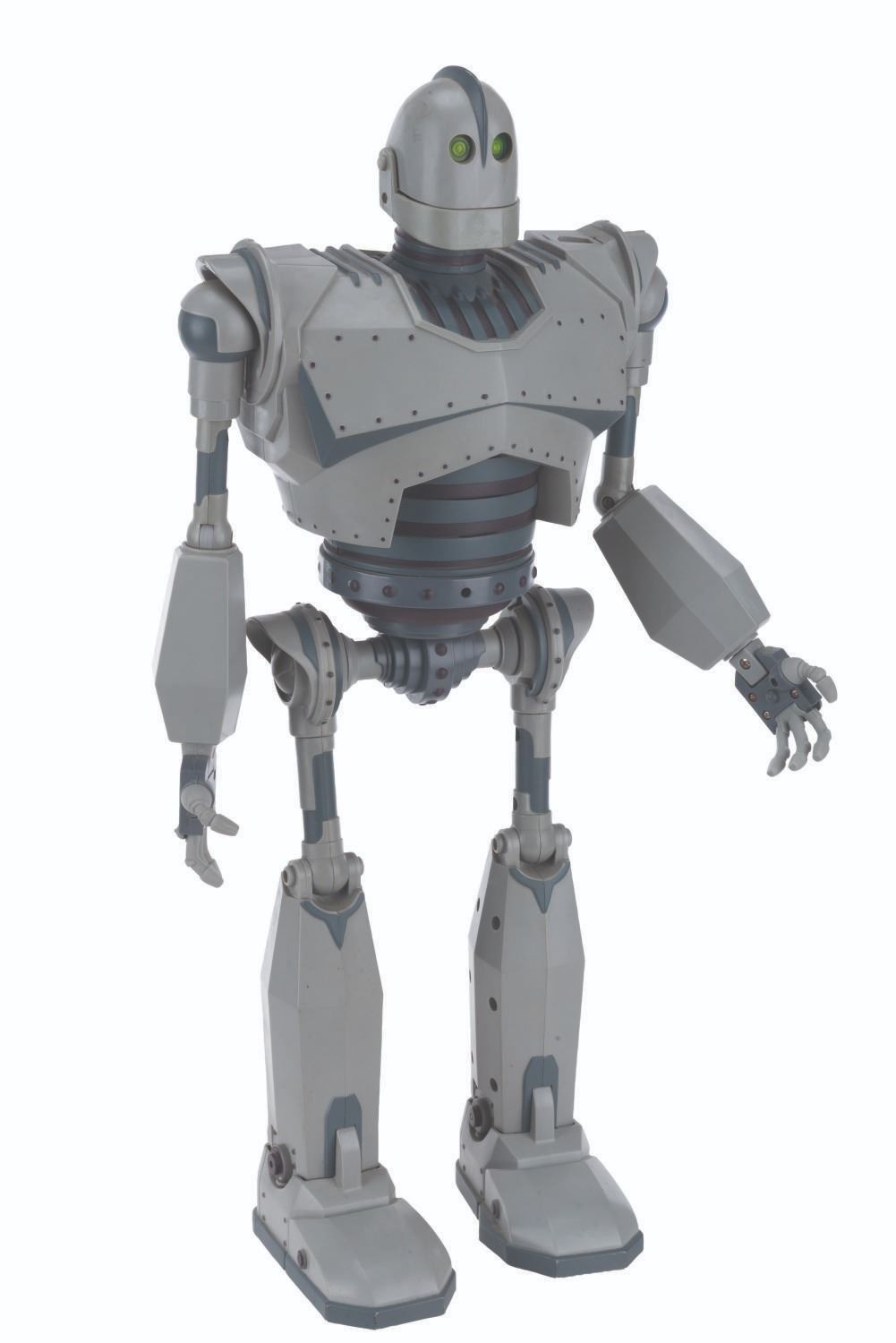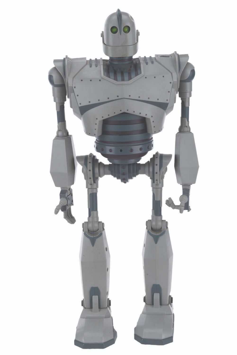 (Warner Bros./Trendmaster, 1999) An Ultimate Iron Giant figure, with a figure of Hogarth Hughes, a sculpture, and a car included. With three "AA " batteries (not included), the Giant speaks several phrases and head moves to eat the junkyard props. Standing 20 " tall, the Giant is in very good working condition, with light wear from display.