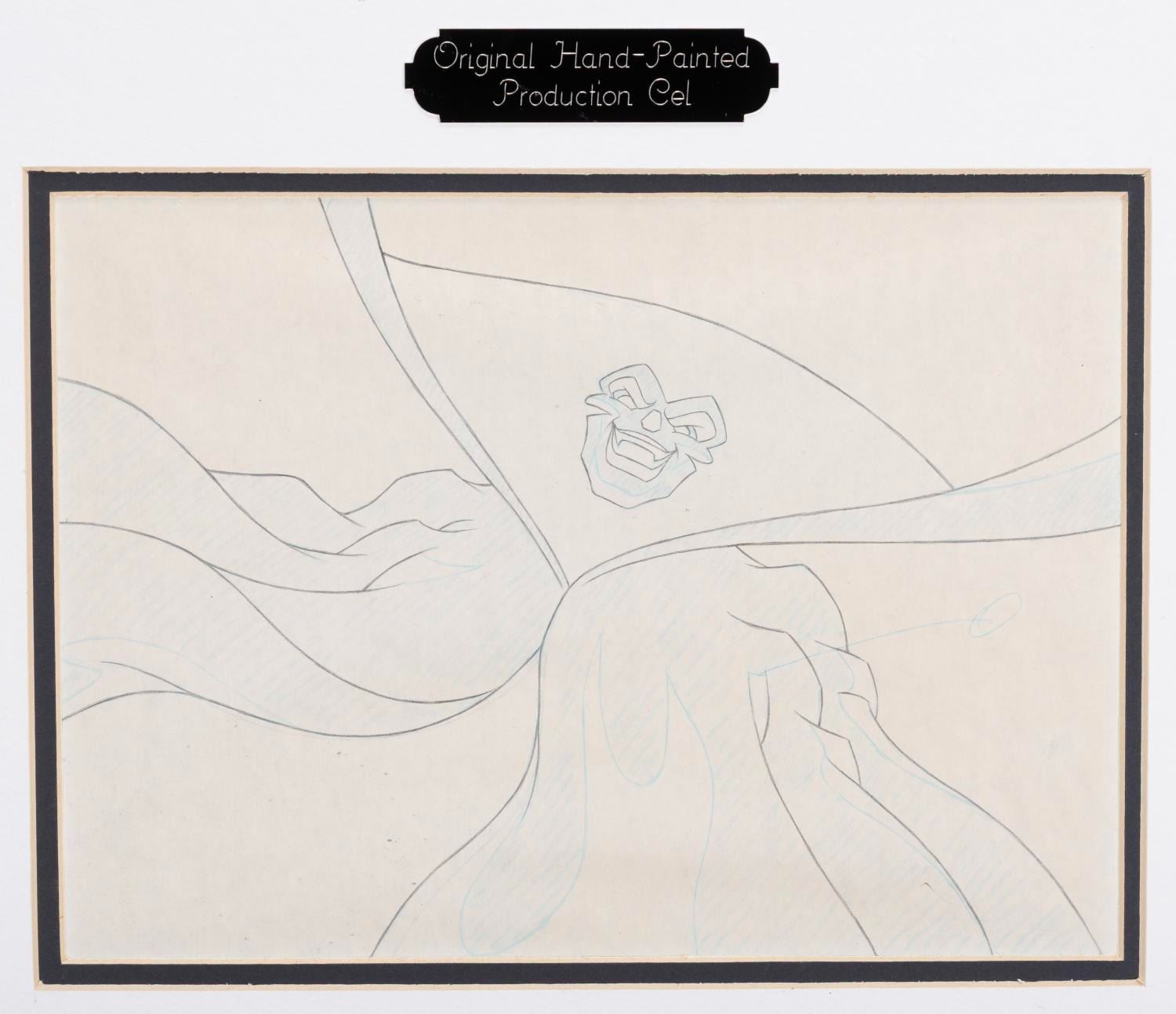 (Filmation, 1987) An original hand-painted production cel and drawing from "Pinocchio and the Emperor of the Night, " with a color copy background. With image sizes of 8.25 " x 11.5 " in an 18 " x 25 " matte, the piece displays in very good condition with light soiling and wear from handling and age.