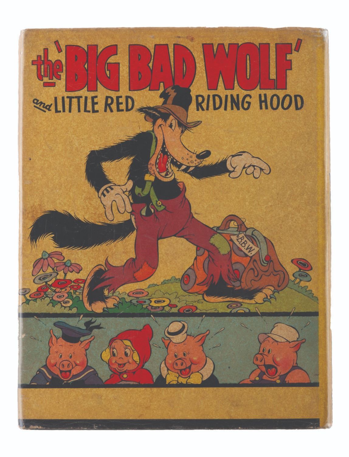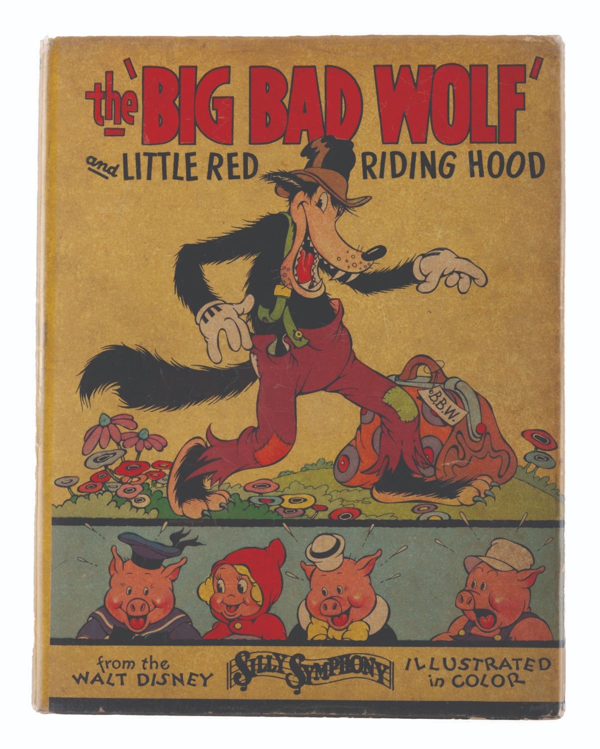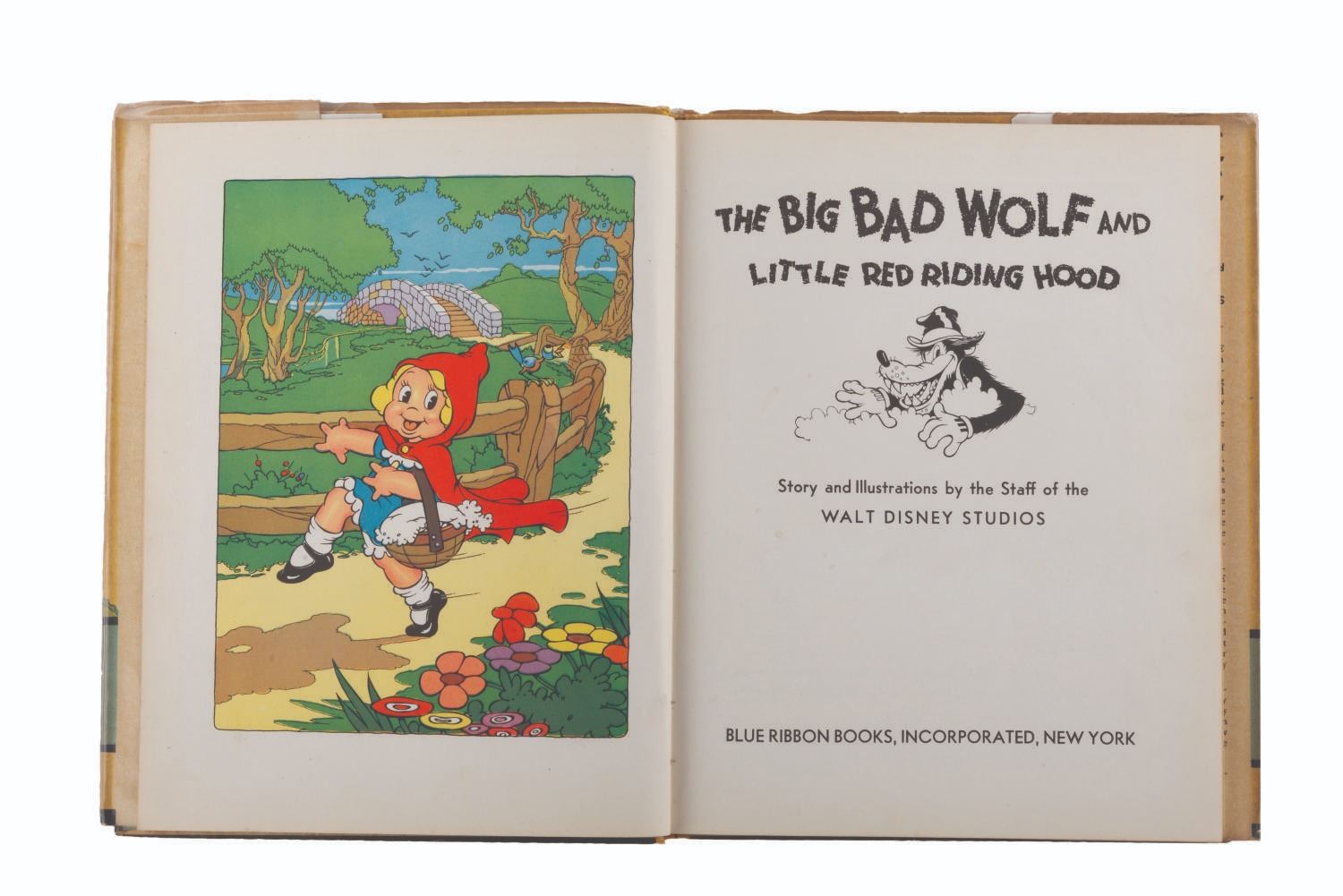 (Blue Ribbon Books, 1934) A The Big Bad Wolf and Little Red Riding Hood book, based on the Disney animated short, with its original dust jacket. Measuring 8 " x 10.5 ", the book displays in very good condition with discoloration from age, a pencil inscription inside, and wear.
