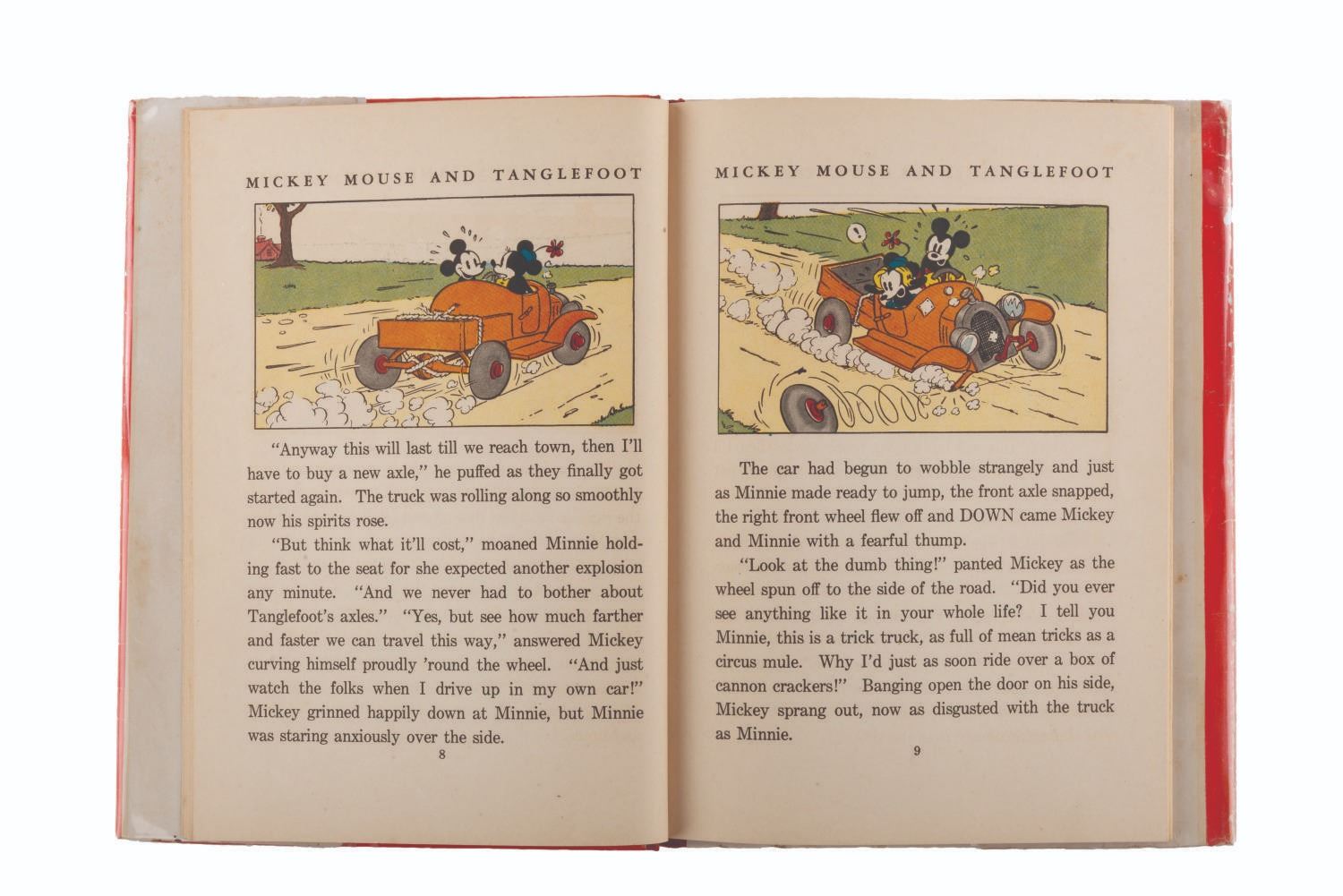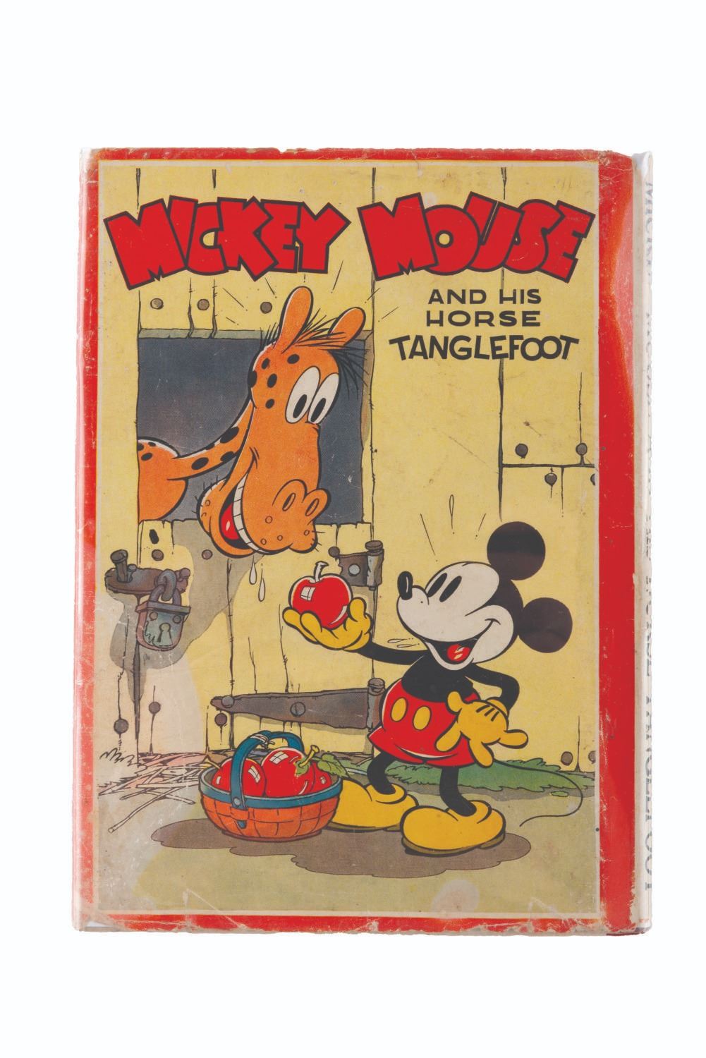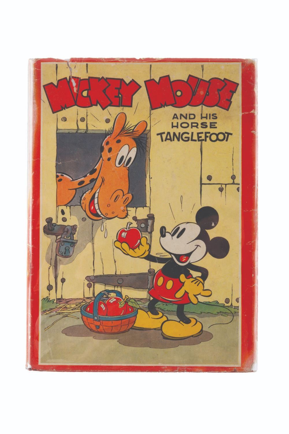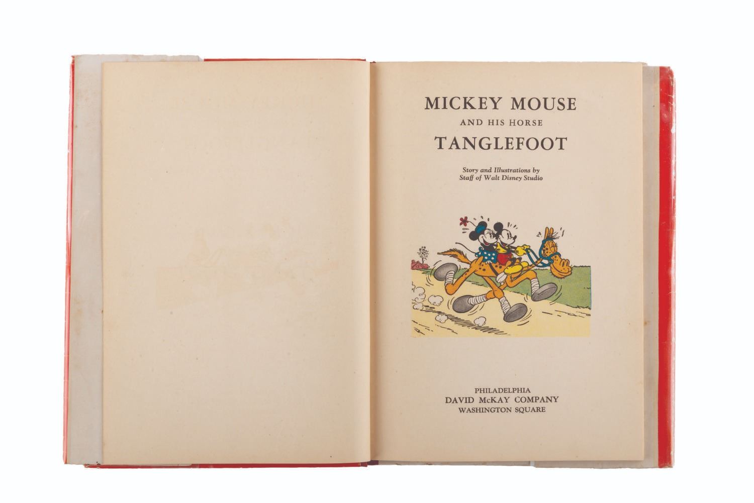(David McKay Company, 1936) A Mickey Mouse and His Horse Tanglefoot book with its original dust jacket, published by David McKay Company. Measuring 6.5 " x 8.75 ", the book is in good condition with discoloration from age, an inscription on the first page, and heavy wear to the dust jacket.