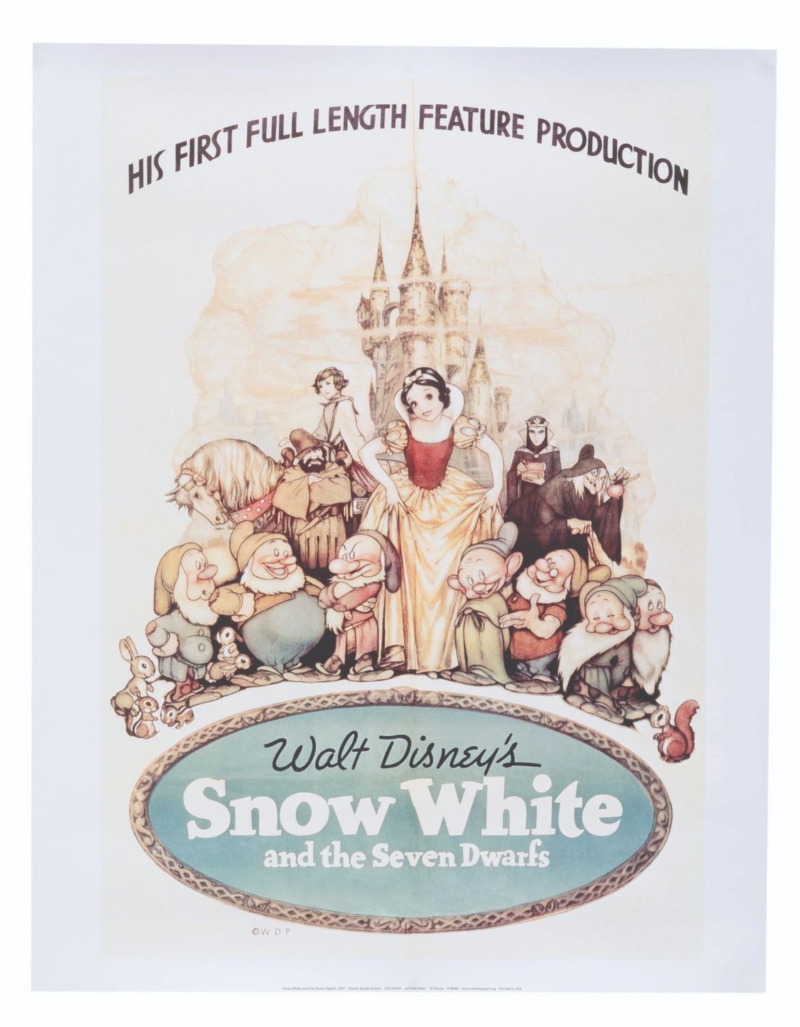 (The Met, 2021) A souvenir poster print of the "Snow White and the Seven Dwarfs " one-sheet from the Inspiring Walt Disney: The Animation of French Decorative Arts exhibition at the Metropolitan Museum of Art. Measuring 22 " x 28 ", the print is in very good condition with light wear.