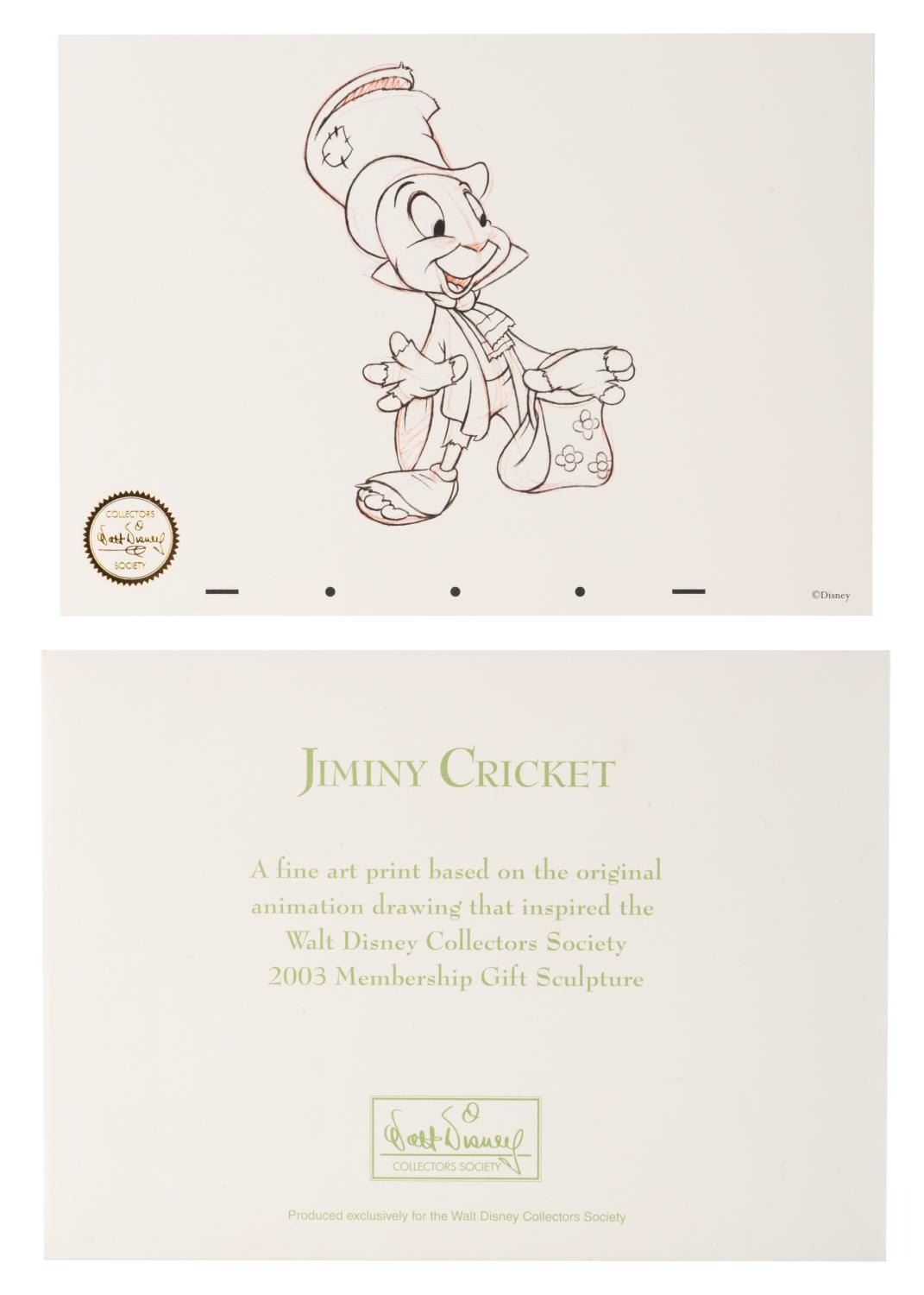 (Disney, 2003) A fine art print of a Jiminy Cricket production drawing from "Pinocchio, " exclusively available to members of the Walt Disney Collectors Society. Measuring 5 " x 7 ", the print is in fine condition.