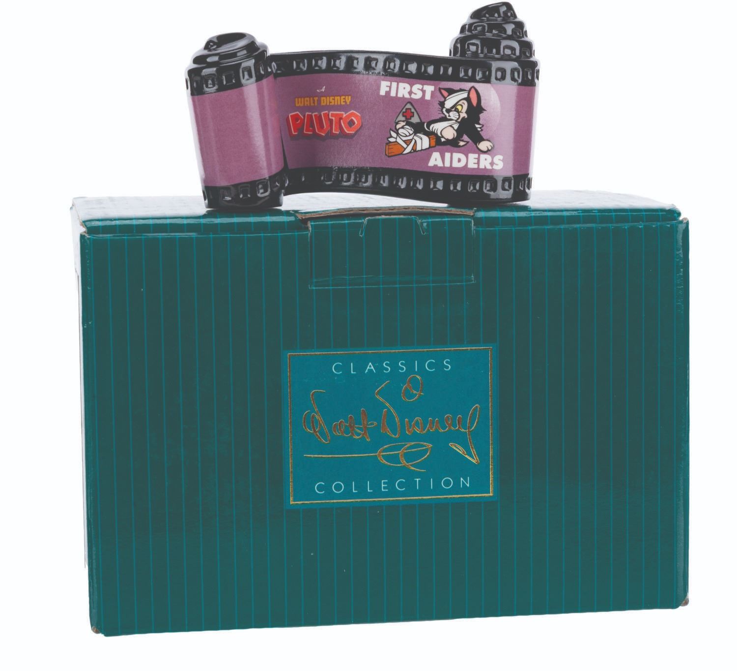(WDCC, 1999-2001) A Walt Disney Classics Collection ceramic opening title scroll for the Pluto short "First Aiders. " Measuring 2 " x 3.25 ", the piece is in fine condition.