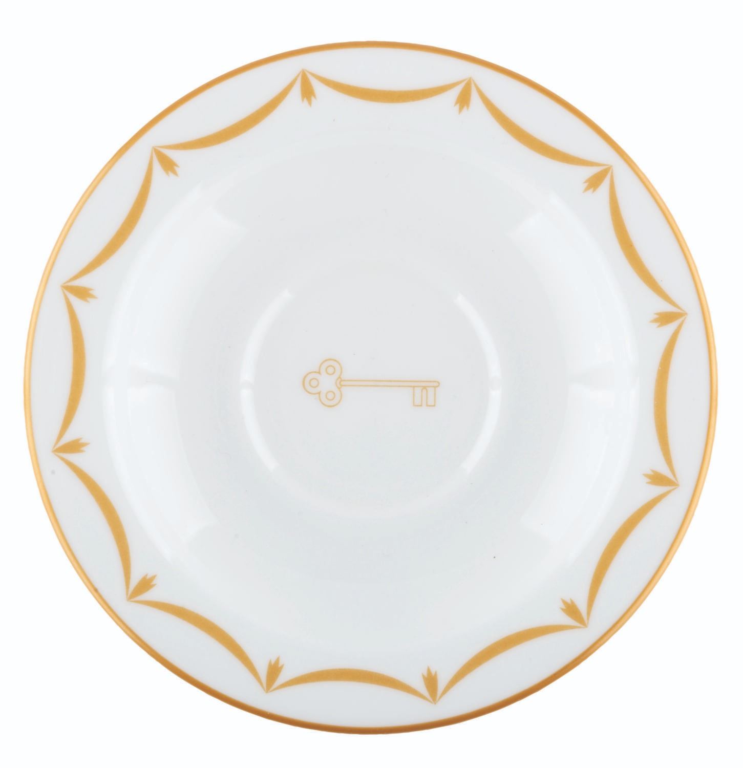 (WDCC/Royal Doulton, 1999) A saucer from the "Open House Event " at Disneyland, designed to support the Walt Disney Classics Collection "Tea For Two " sculpt of Cinderella’s Gus and Jaq in a teacup. Measuring 5.75 " in diameter, the saucer is in very good to fine condition.