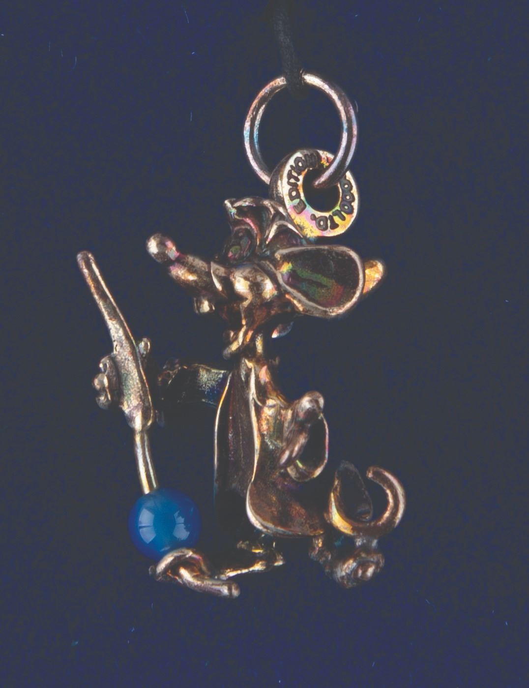 (Disney, 1994) A sterling silver charm of Jaq from "Cinderella, " released in a limited edition by the Disney Store. Measuring 1.25 ", the charm is in good condition with color shift from age.
