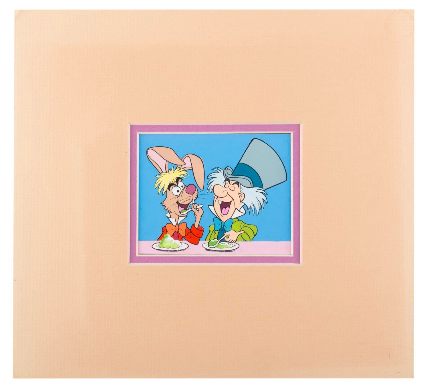 (Disney, 1970s-80s) An original painting of the Mad Hatter and March Hare from "Alice in Wonderland " created for use in a book or magazine. Measuring 3 " x 3.75 " and 9 " x 9.75 " matted, the painting is in very good condition with light wear from production, including very light soiling.