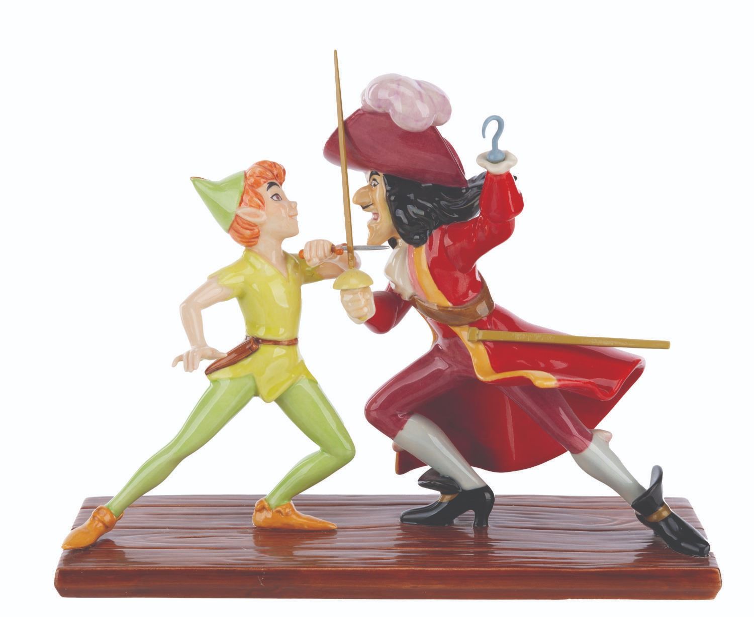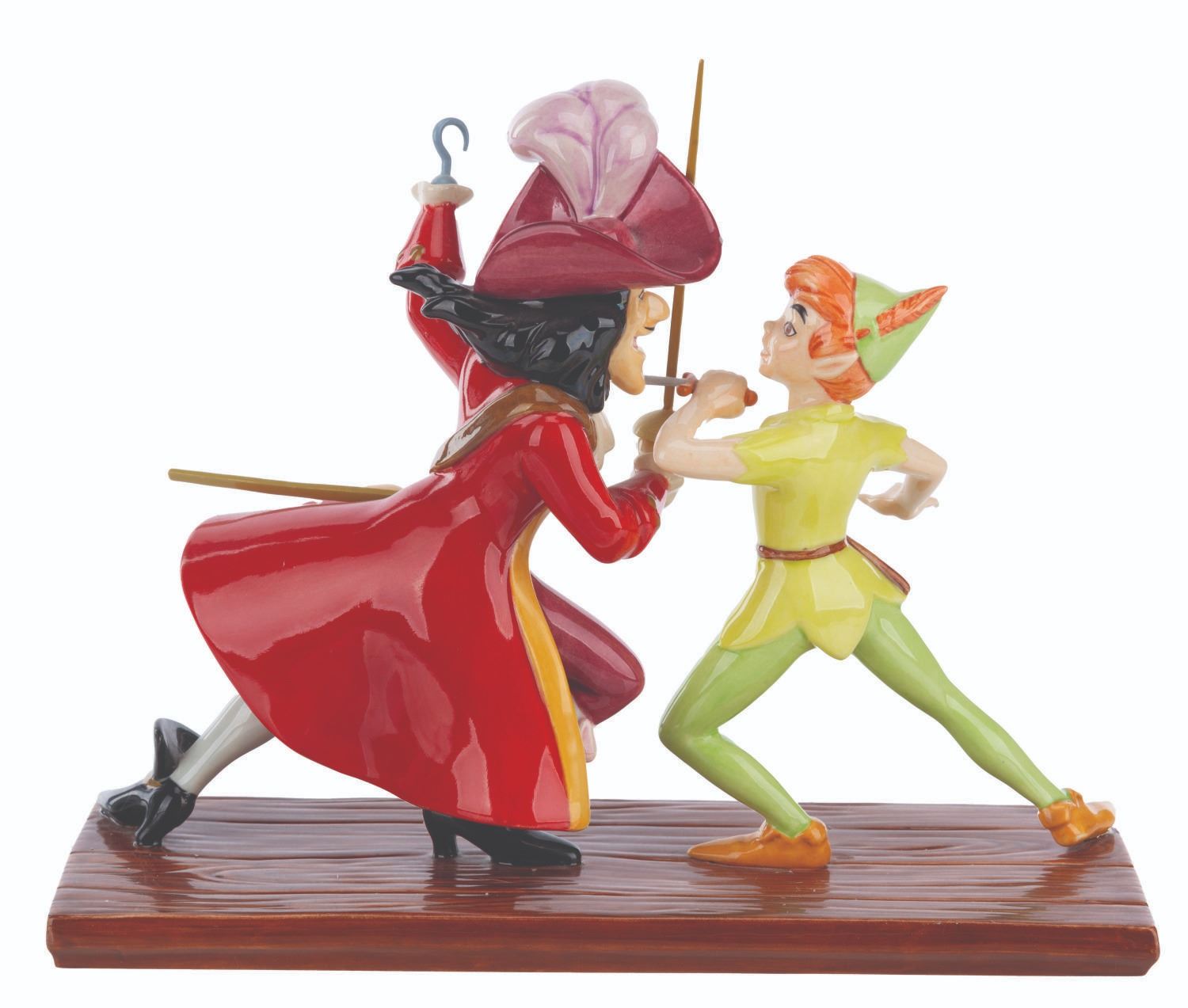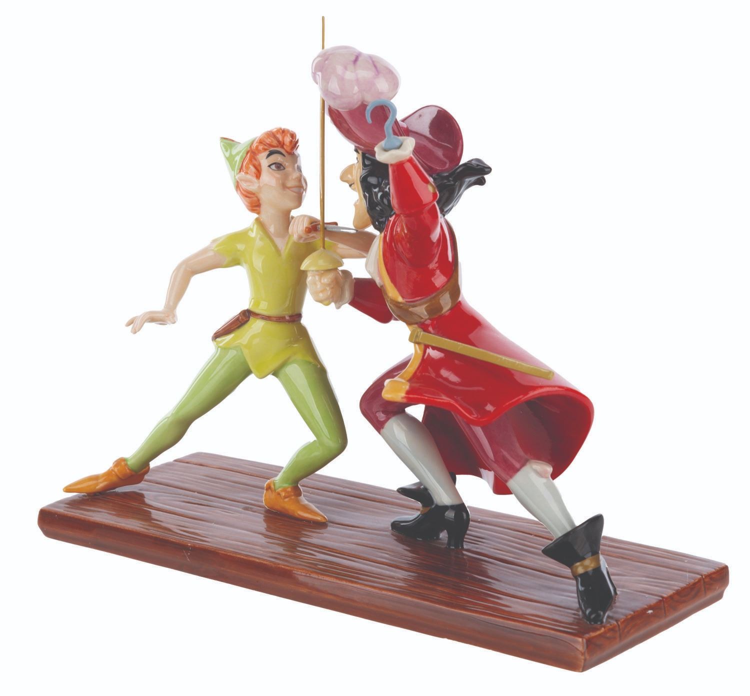 (Royal Doulton, 2002) A Disney Showcase Collection ceramic figurine of Peter and Captain Hook dueling from Walt Disney’s "Peter Pan. " Measuring 7.5 " x 2.75 " x 6.5 " tall, the figurine displays in fine condition.