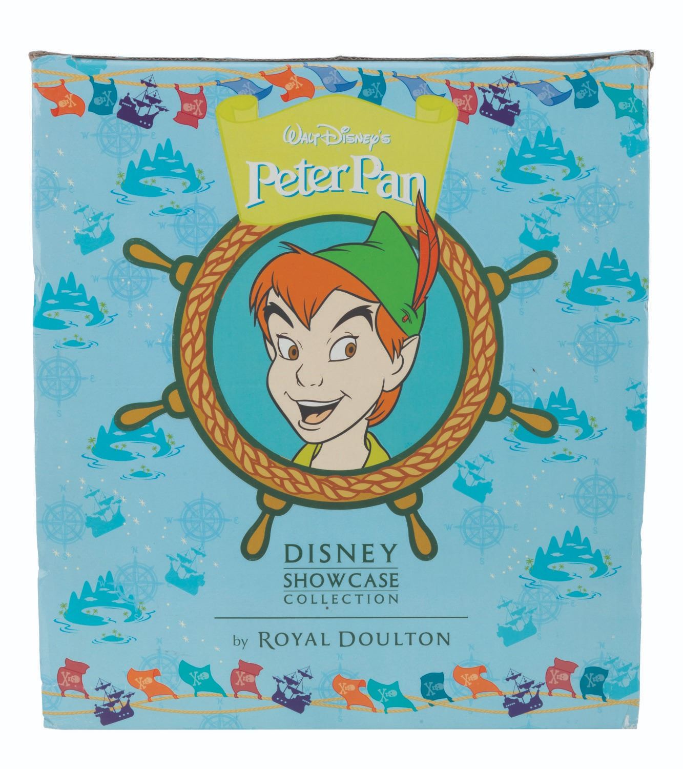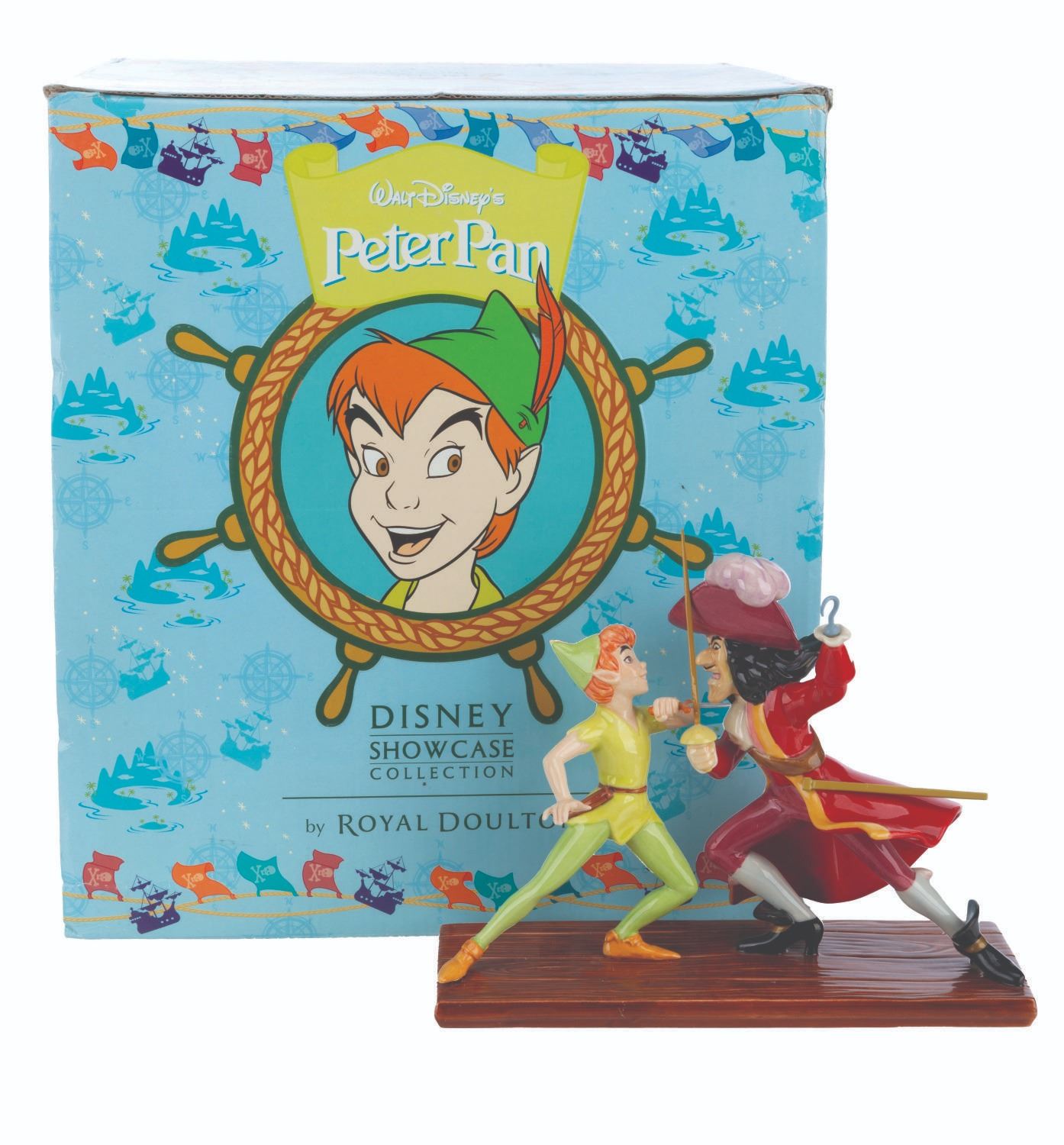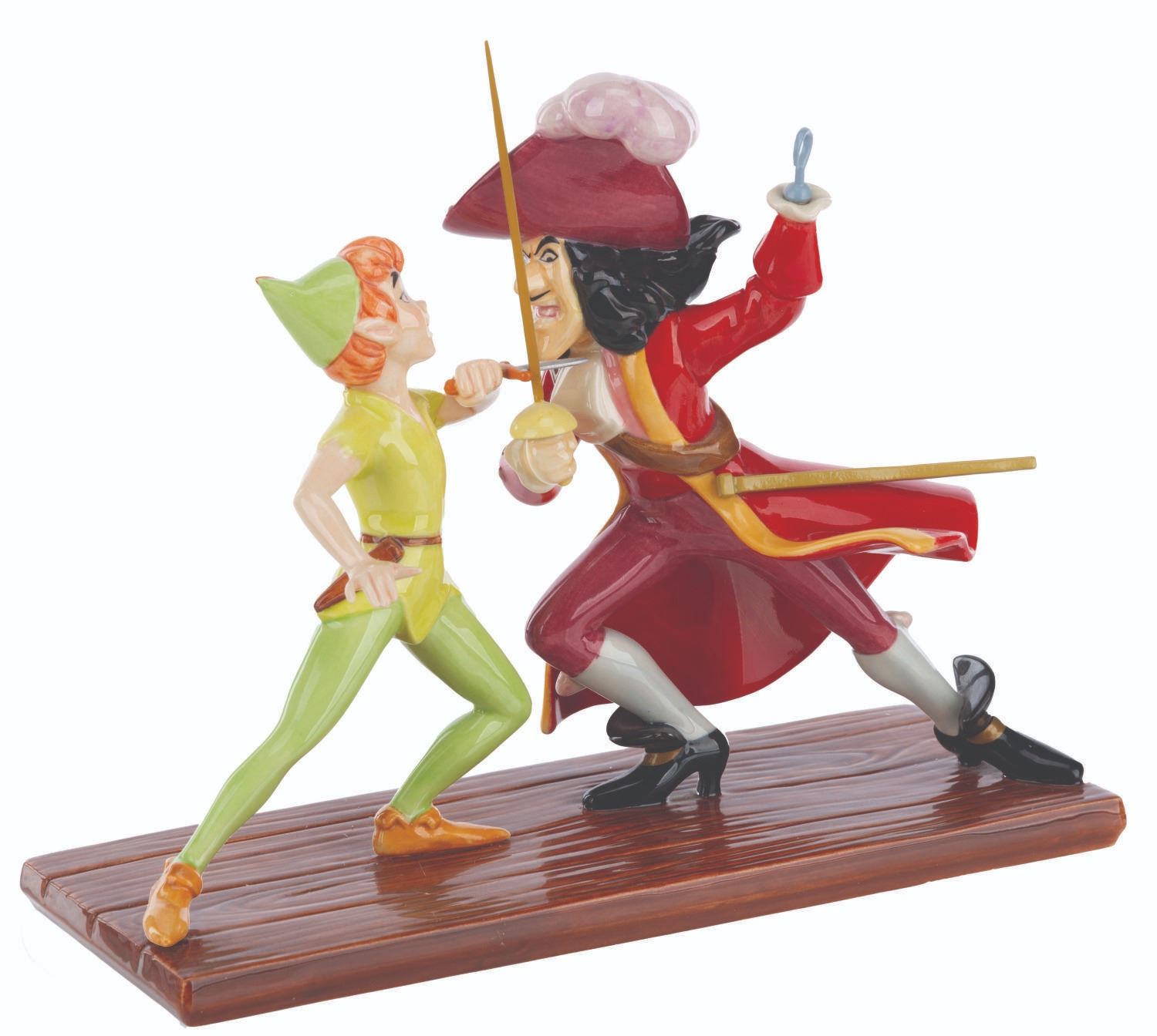 (Royal Doulton, 2002) A Disney Showcase Collection ceramic figurine of Peter and Captain Hook dueling from Walt Disney’s "Peter Pan. " Measuring 7.5 " x 2.75 " x 6.5 " tall, the figurine displays in fine condition.