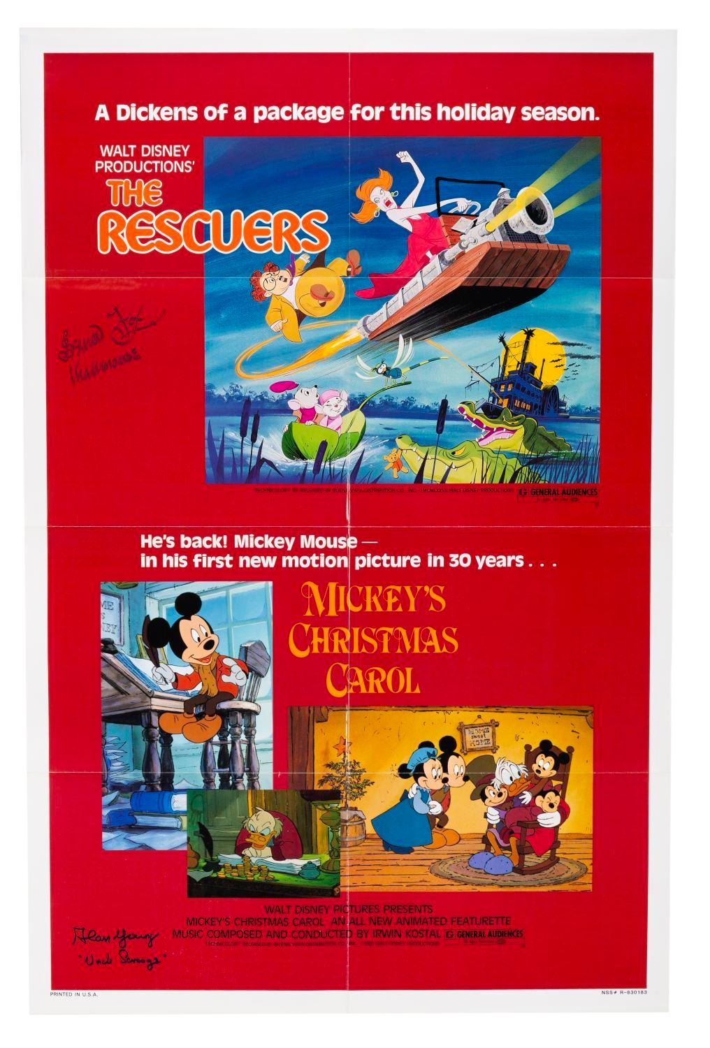Lot 457 A Signed "The Rescuers " & "Mickey's Christmas Carol " One-Sheet.
