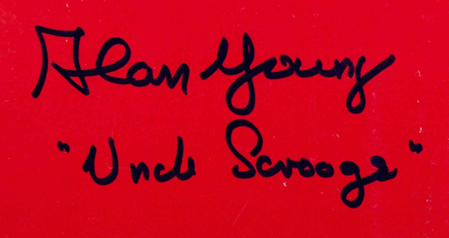 (Disney, 1983) A signed one-sheet for the "The Rescuers " and "Mickey's Christmas Carol " double-bill release. The poster has been signed by Bernard Fox, the voice of Mr. Chairman in "The Rescuers, " and Alan Young, the voice of Scrooge McDuck in "Mickey’s Christmas Carol. " Measuring 27 " x 41 ", the poster displays in very good condition with typical light wear along original fold lines, and very light scuffs to the bottom left panel.