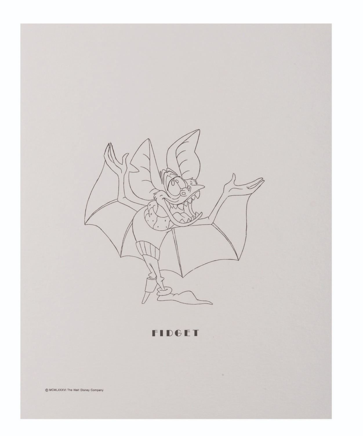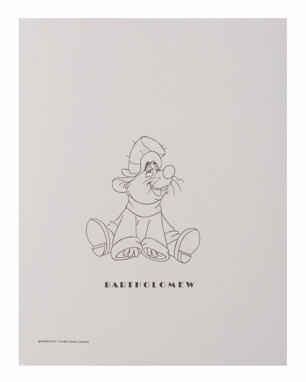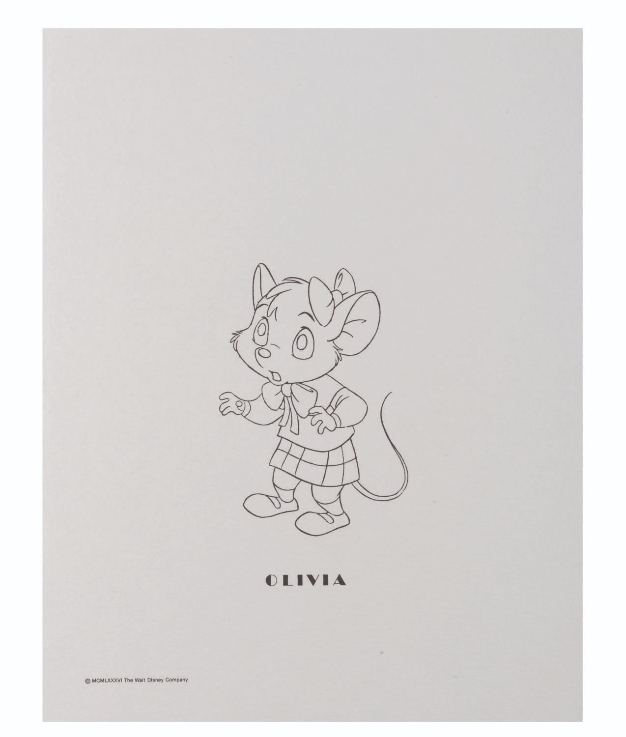 (Disney, 1986) A set of presentation character prints from "The Great Mouse Detective " featuring line art of Basil, Dr. Dawson, Olivia, Flaversham, Ratigan, Bartholomew, Fidget, and Felicia. Each measuring 11 " x 14 ", the prints are in fine condition.