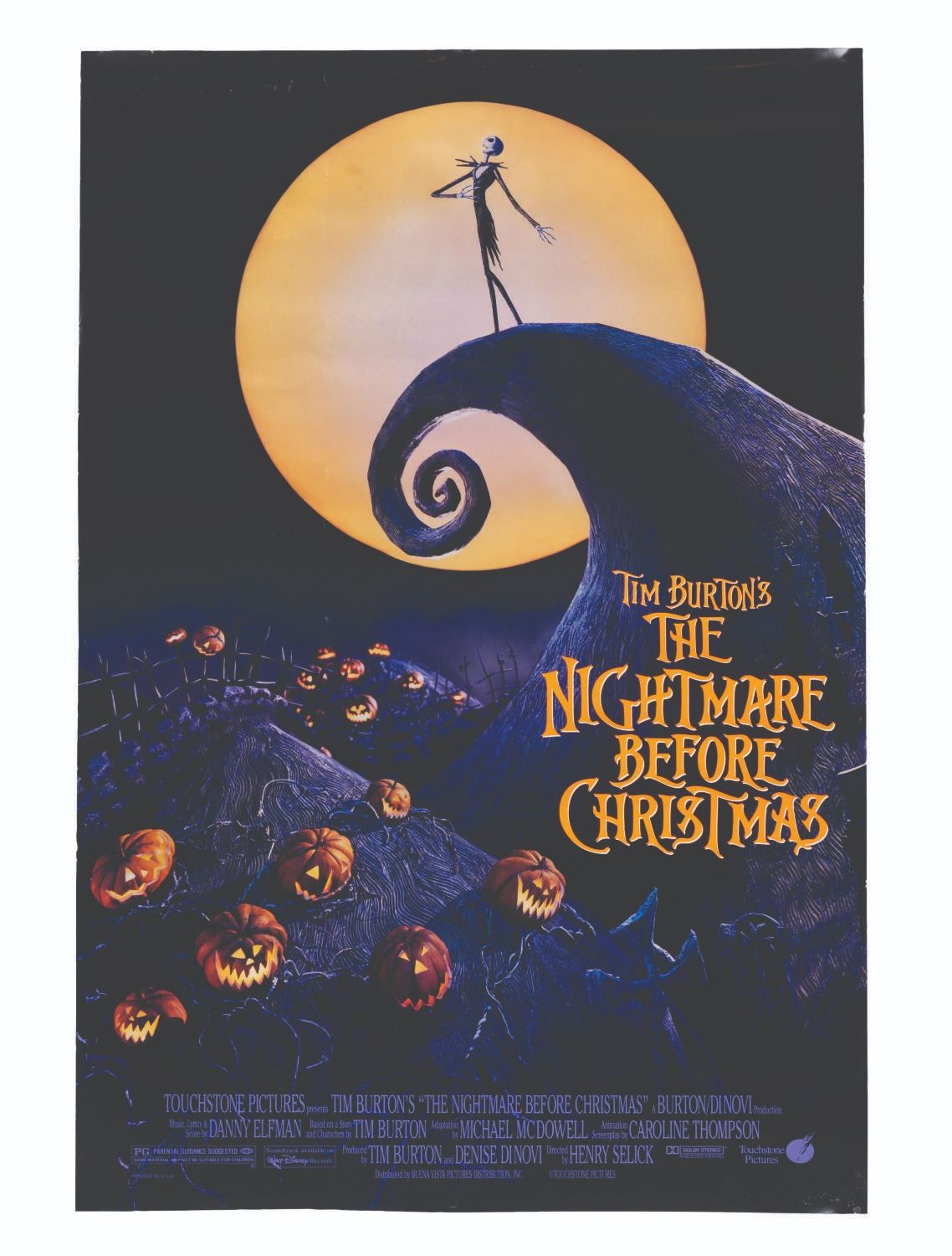 (Disney, 1993) An original "Tim Burton's The Nightmare Before Christmas " one-sheet. Measuring 27 " x 40 " the poster is in fair condition with small creases, and light spotting throughout.