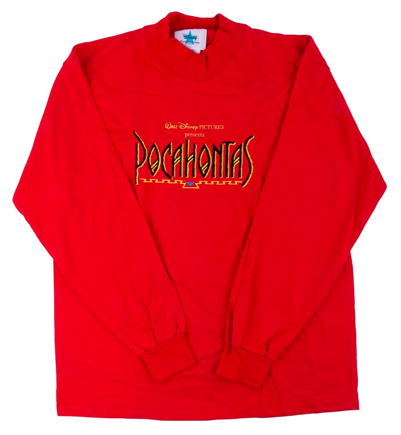 (Disney, 1995) A long-sleeve "Pocahontas " shirt, gifted to crew members who worked on the film. Labeled a size XL, the shirt is in very good condition with light pilling.