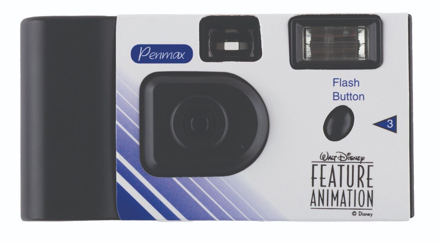 (Penmax, 1999) A disposable camera with a "Walt Disney Feature Animation " logo, most likely handed out to Cast Members at a Studio party or event. The camera is in fine condition, non-functional from age.