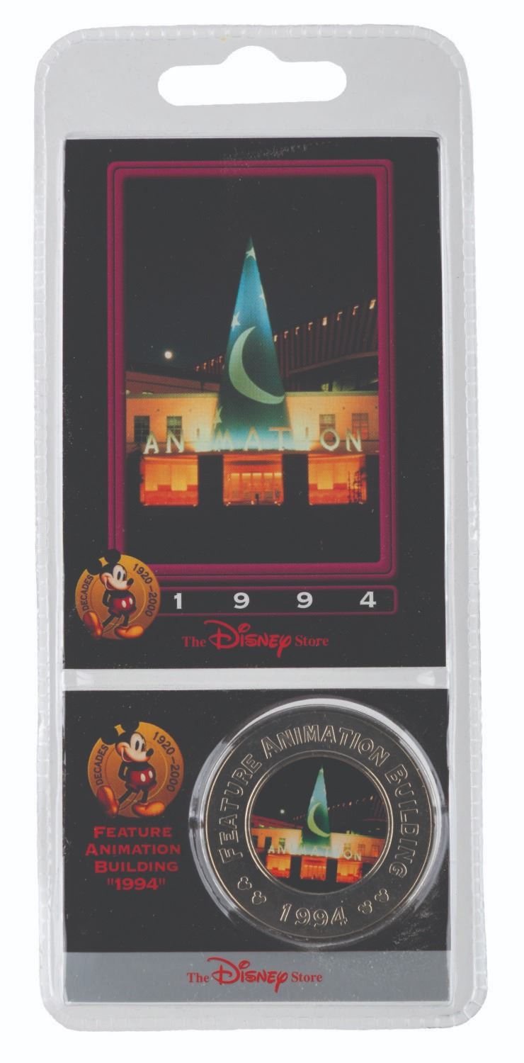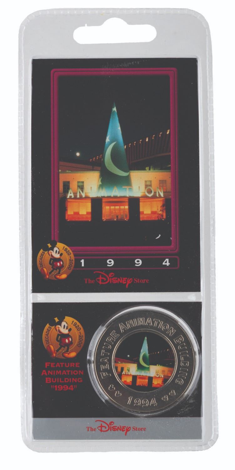 (Disney, 2000) A Disney Decades coin and collector card of the colorful Feature Animation Building that became an instant landmark in Burbank, California in 1994. The set is in fine condition sealed in the original packaging.