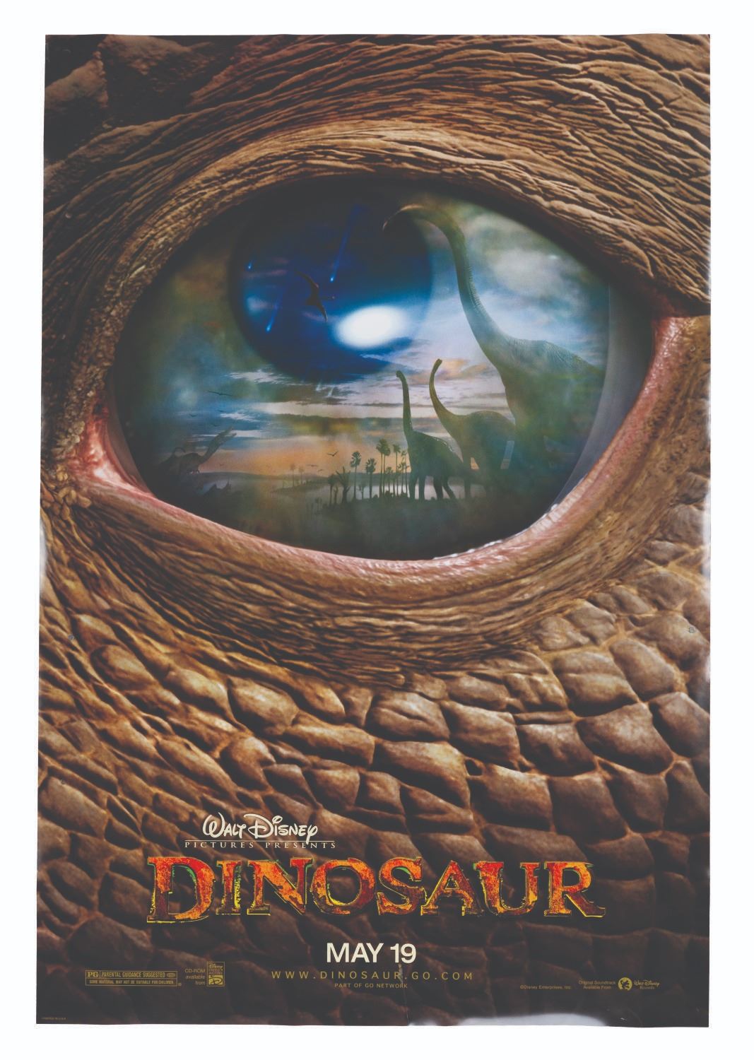 (Disney, 2000) A one-sheet for "Dinosaur. " Measuring 27 " x 40 ", the poster displays in good condition with a 2 " line of rubber band residue at bottom center.