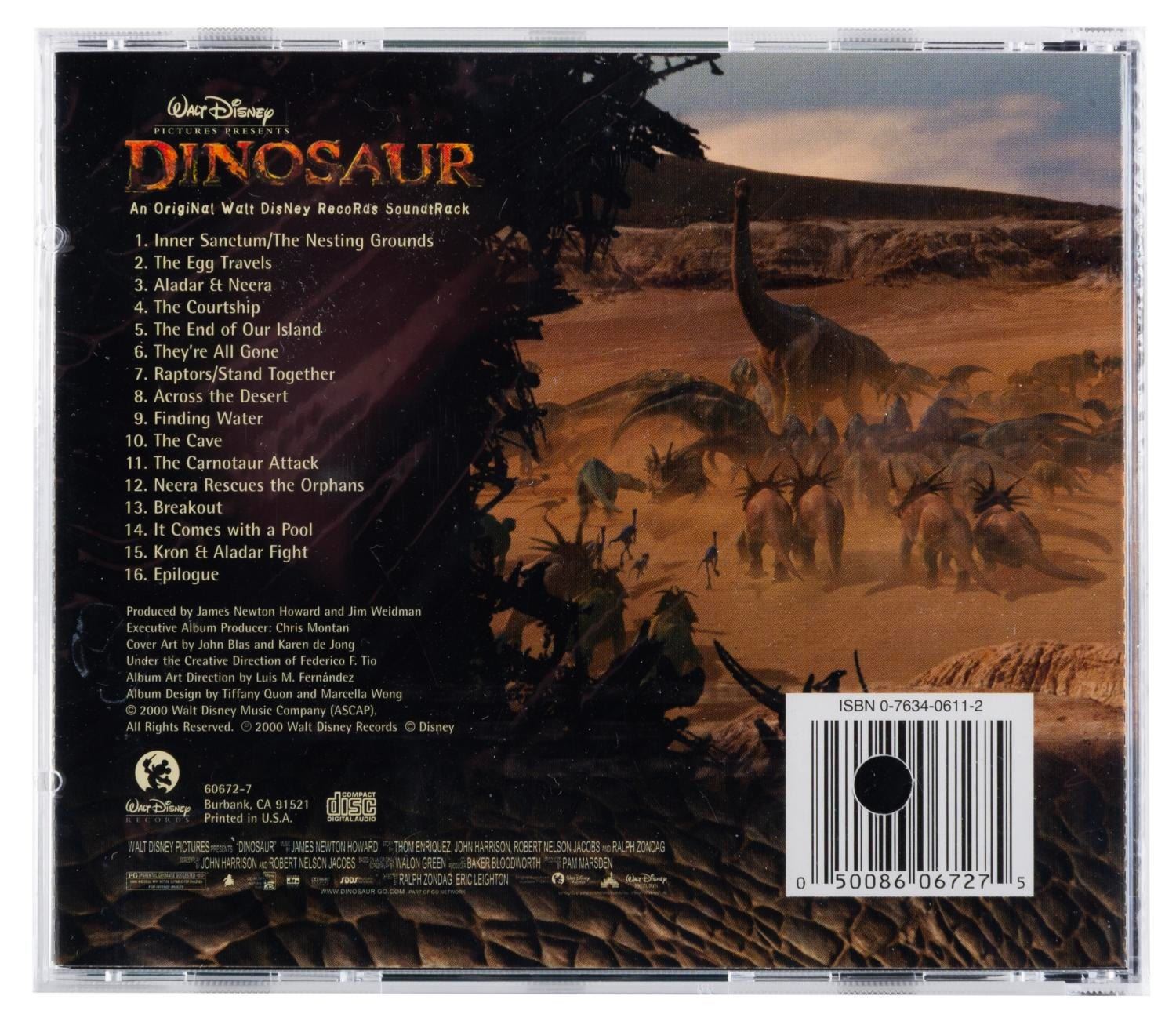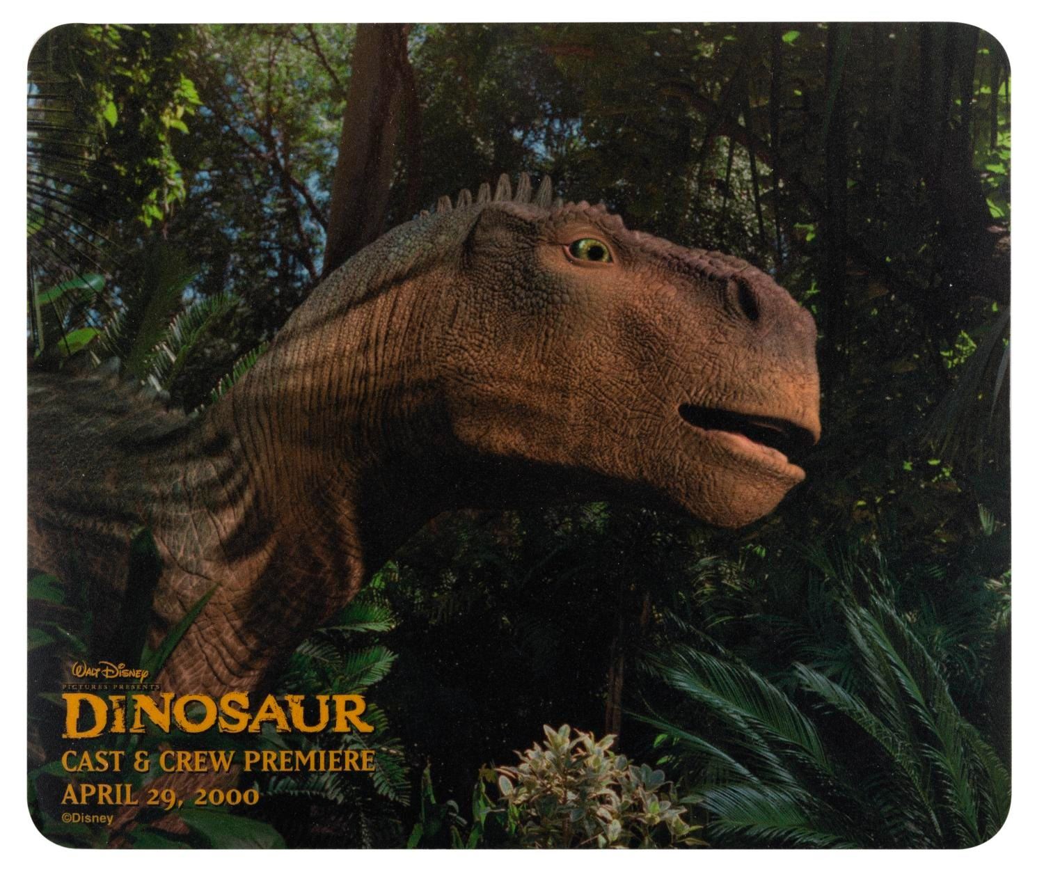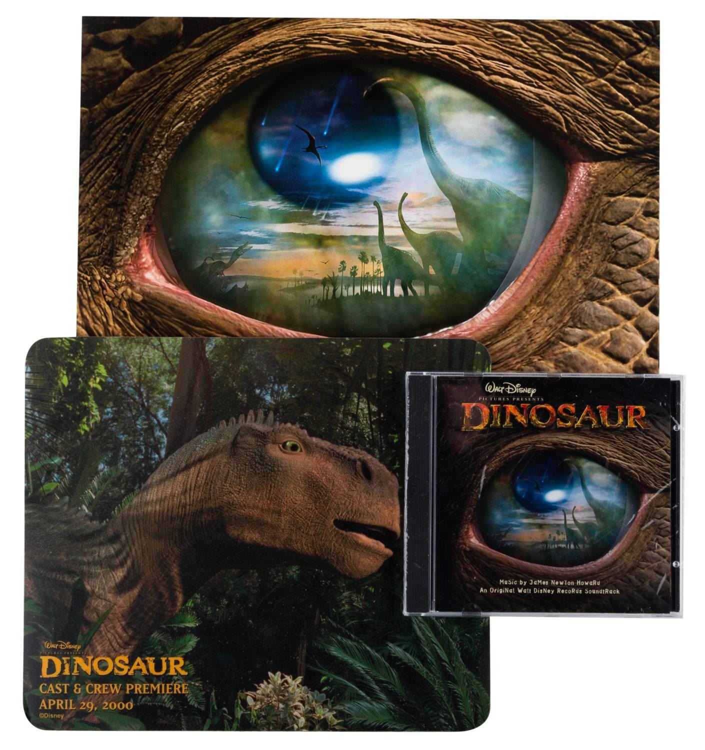 (Disney, 2000) A "Dinosaur " program with a mouse pad and CD soundtrack that were given to attendees of the Cast and Crew Premiere on April 29, 2000. The set is in very good condition with light handling wear to the program, and the CD sealed in original cellophane.