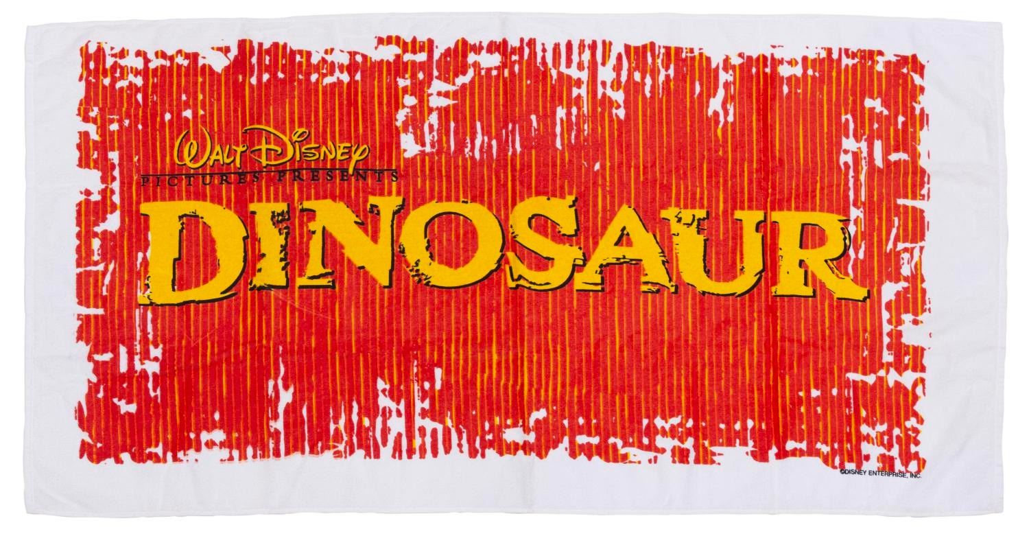 (Disney, 2000) A Walt Disney Feature Animation crew gift beach towel from "Dinosaur. " Measuring 30 " x 60 ", the towel is in very good, unused condition with light discoloration from age.