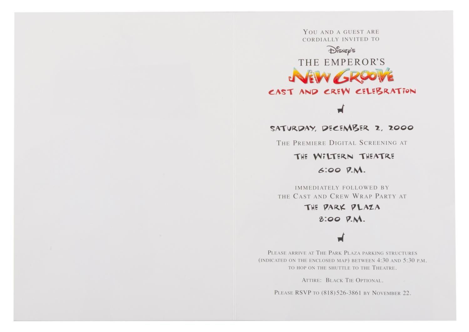 Lot 563 An "Emperor's New Groove " Cast and Crew Premiere Invitation.