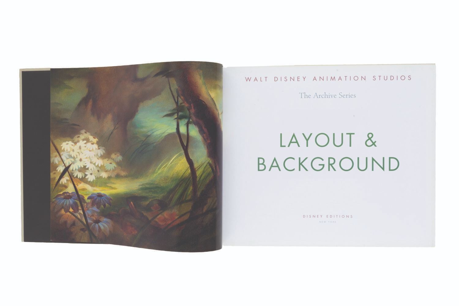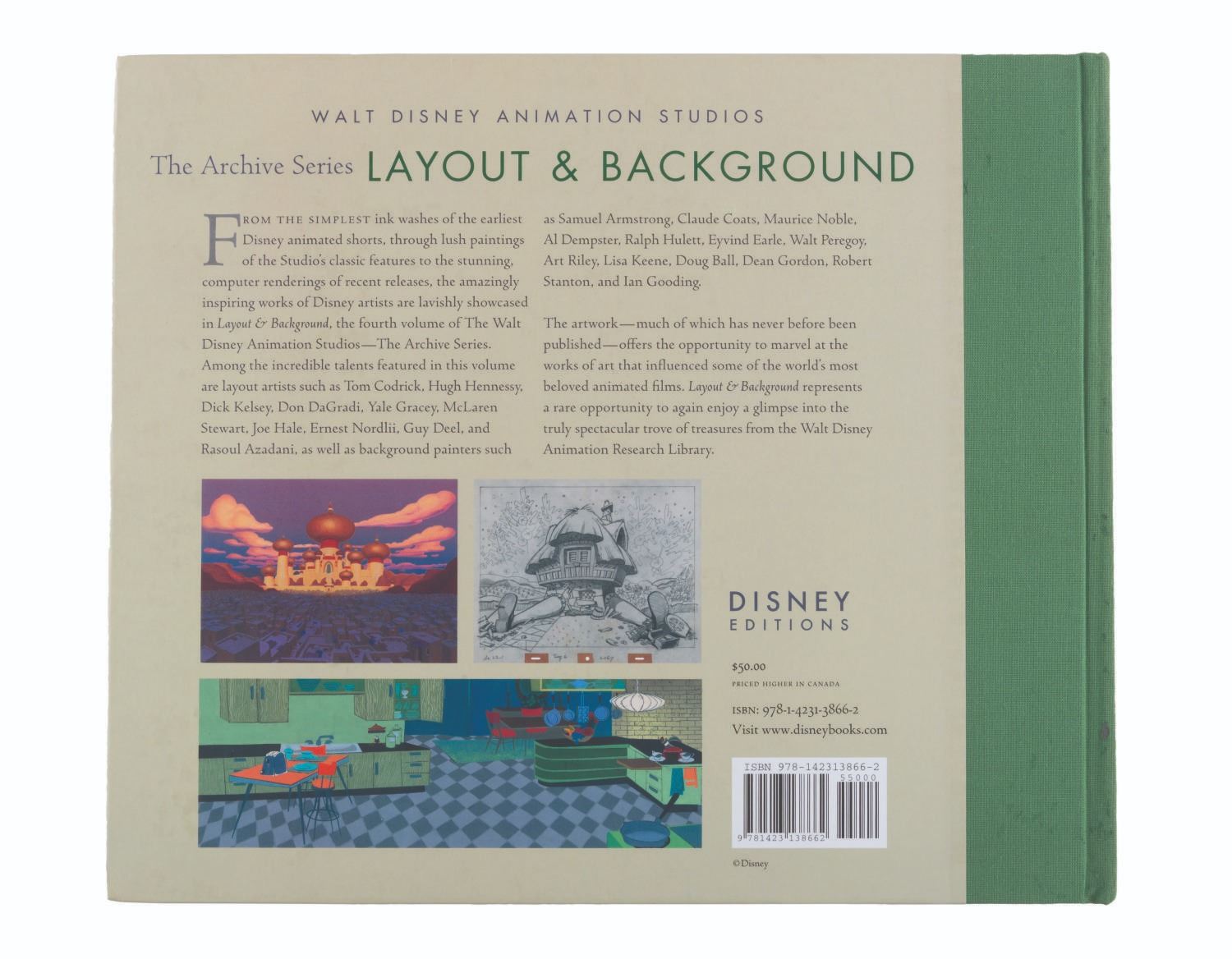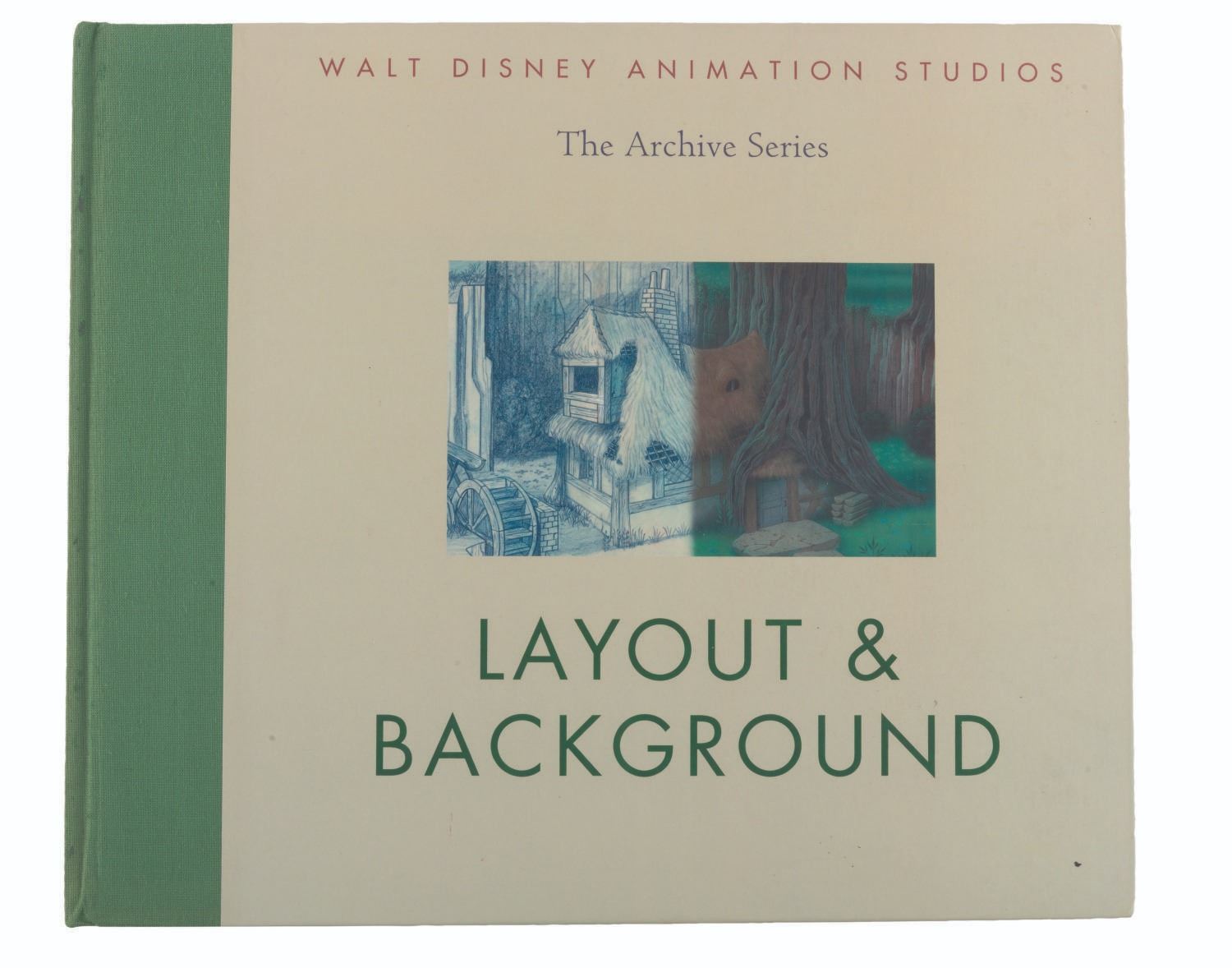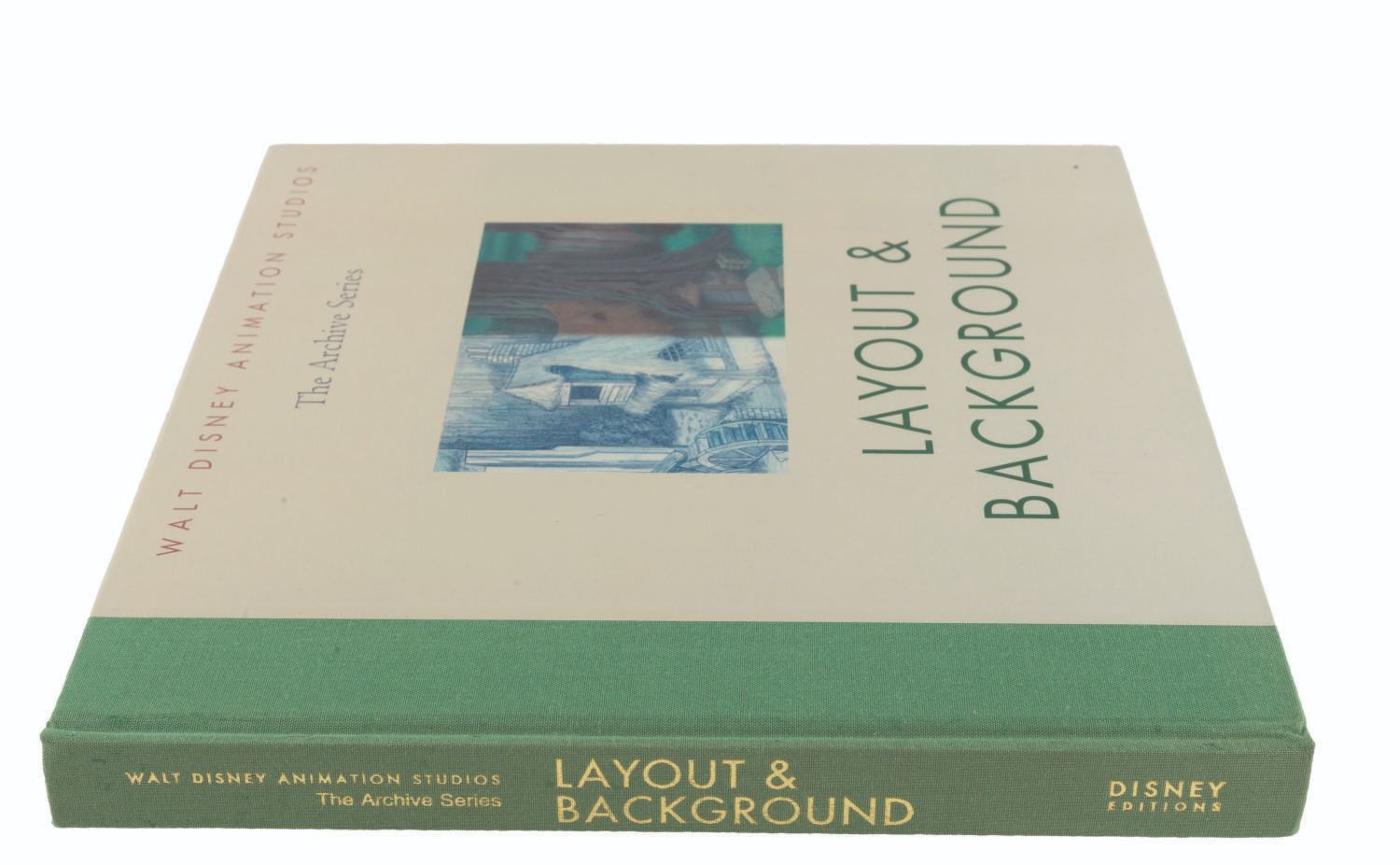 (Disney Editions, 2011) Book four of the Walt Disney Animation Studios Archive Series: "Layout and Background. " The 274-page hardcover book highlights layout drawings and background paintings that immerse the viewer in each magical Disney world. With many two-page spreads and 30-inch gate-fold backgrounds, the book beautifully showcases the talents of Eyvind Earle, Walter Peregoy, Maurice Noble, James Coleman, and more. Measuring 13 " x 11 ", the book is in very good condition with light handling wear to the cover.