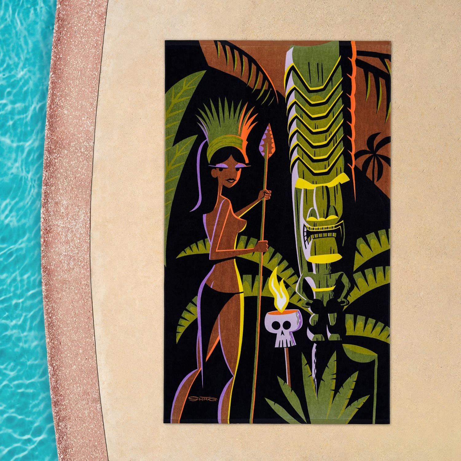 (SHAG, 2010s-20s) A "Hunt for Halulu " Beach Towel designed by SHAG, inspired by his fine art print of the same name. Measuring approximately 60 " x 35 ", the 100% cotton towel is in fine condition.