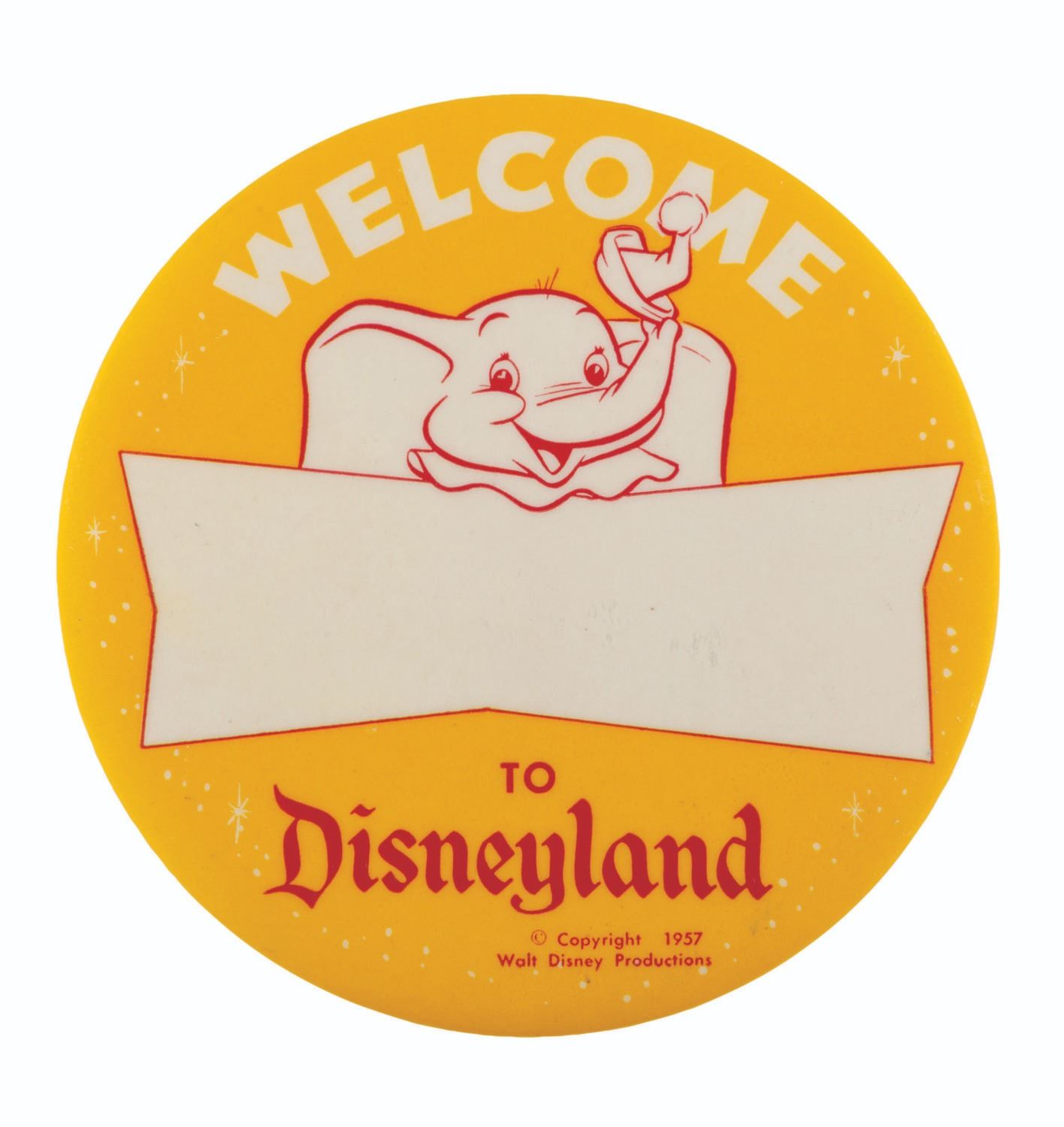 Lot 648 A 1957 Disneyland Dumbo Welcome Button.