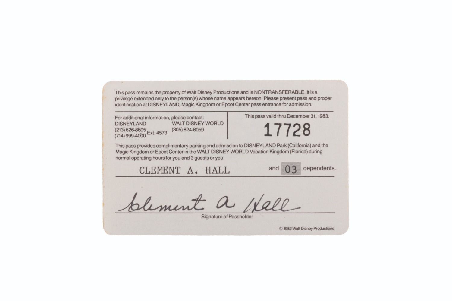Lot 669 WDI Artist Clem Hall's 1983 Disneyland Silver Pass.