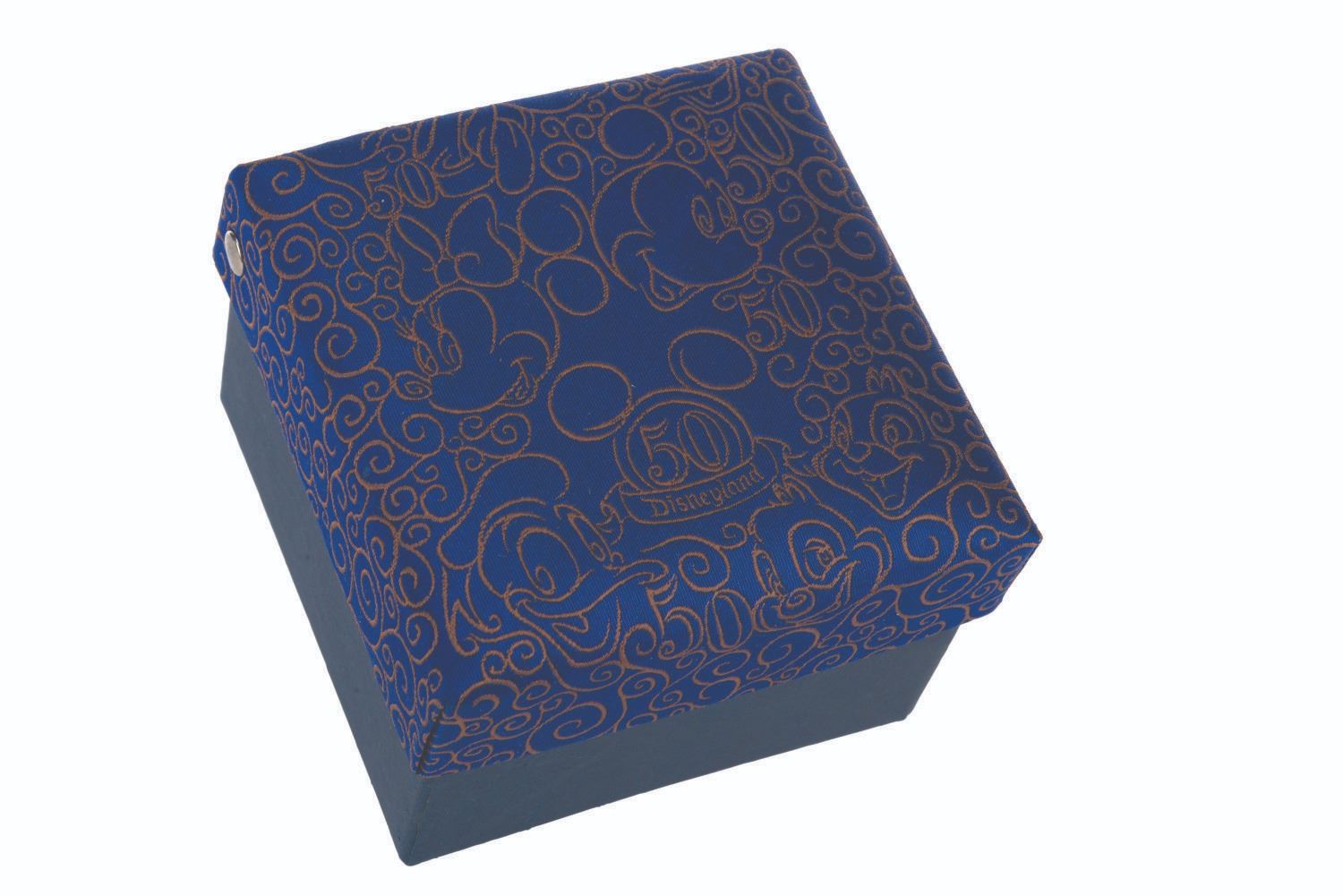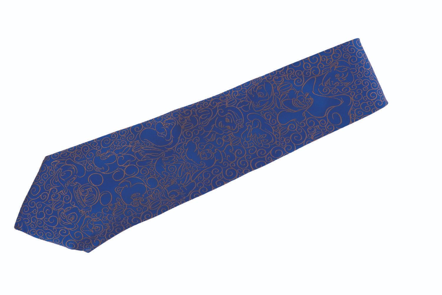 (Disneyland, 2005) A blue Disneyland 50th anniversary tie patterned with outlines of Disney characters. The tie is in fine condition with its original box.