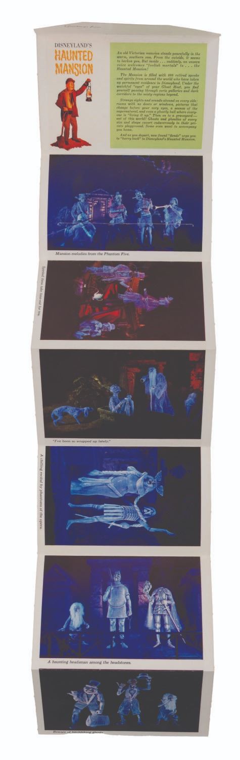 (Disneyland, 1970s) A "12 Funtastic Scenes from The Haunted Mansion " postcard set from the early days of the New Orleans Square attraction. Measuring 4 " x 6.25 ", the postcards display in very good condition with light creases, scratches, a spot of water contact, edge wear, and discoloration from age.