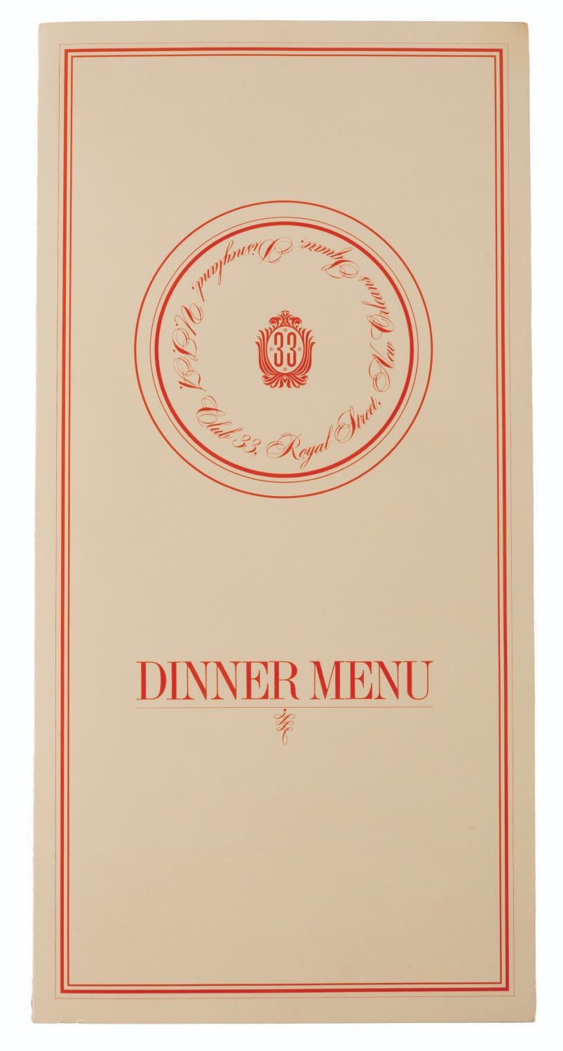 Lot 702 An Early Club 33 Menu.
