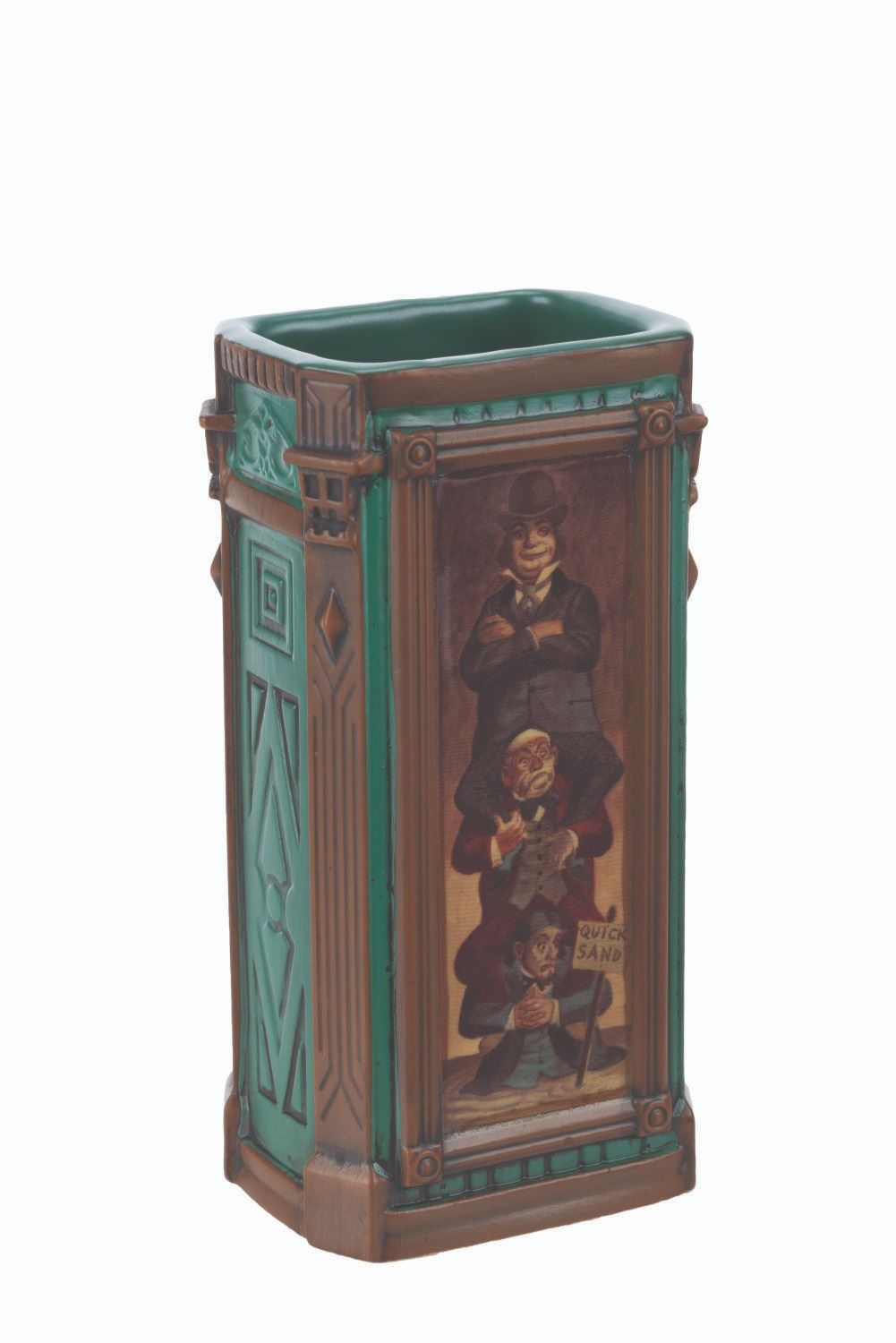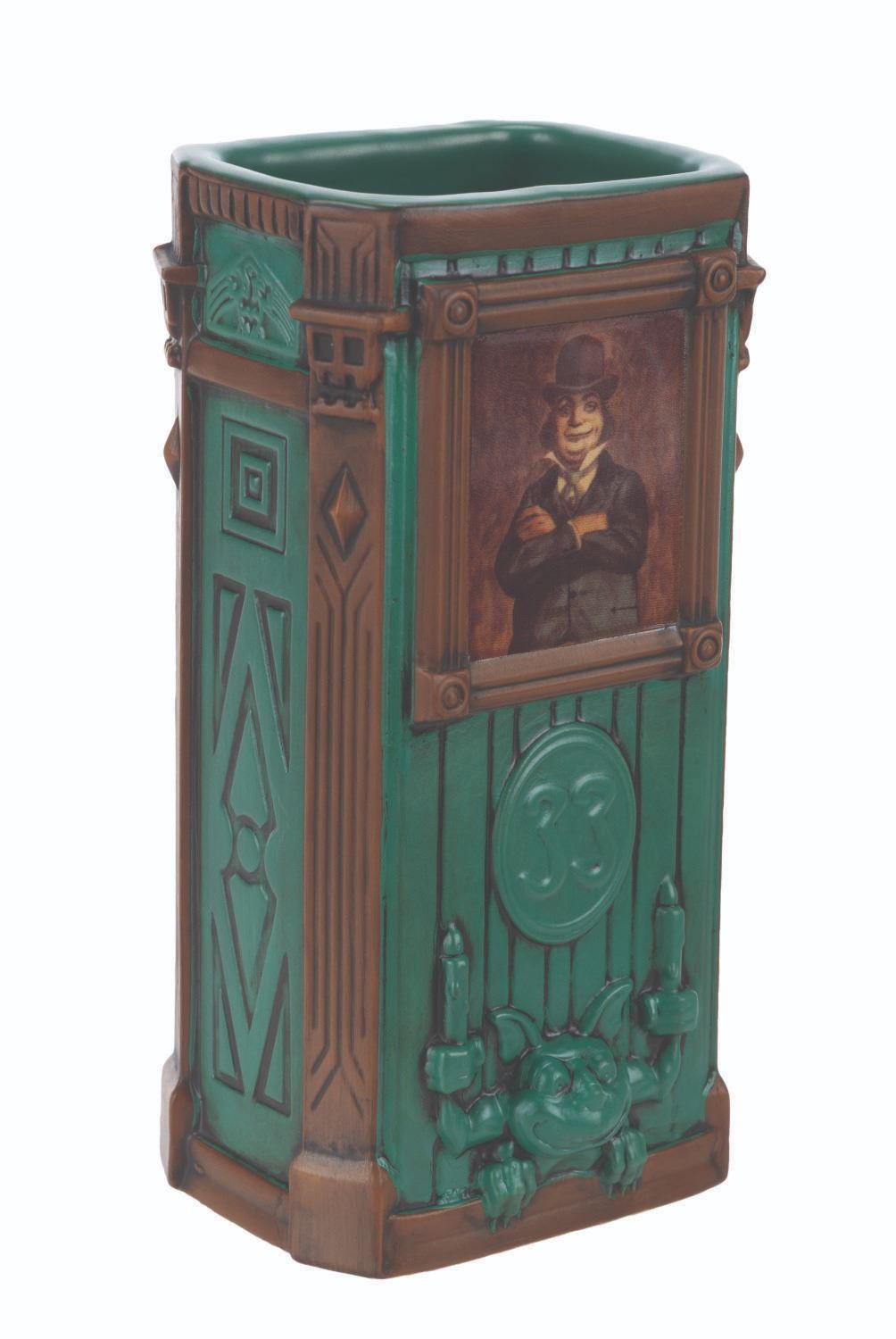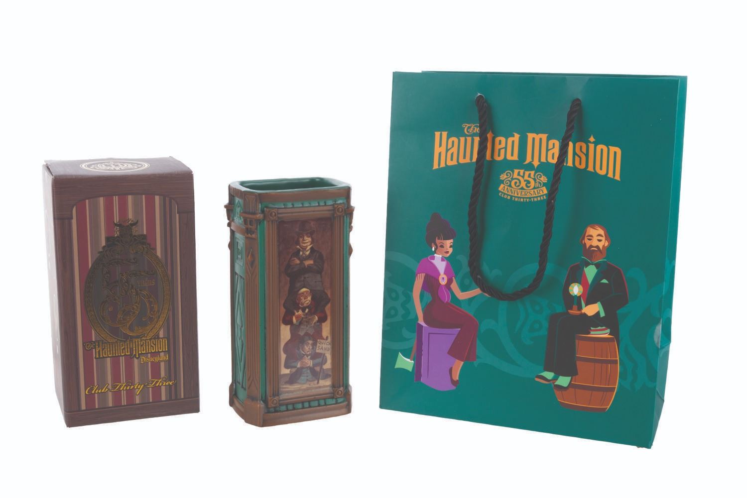 (Disneyland, 2024) A tiki mug and souvenir bag from the Club 33 Haunted Mansion 55th anniversary event. Based on Marc Davis’ original stretching portrait art, this mug features the Quicksand Men. The mug measures 3.5 " x 2.75 " x 6.75 " with the original 4 " x 3.5 " x 7.25 " tall box and 4 " x 8 " x 10 " bag, all in fine condition.