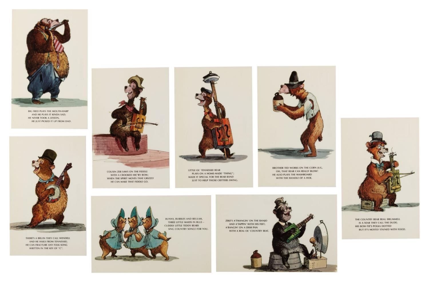 Lot 707 A Set of Country Bear Jamboree Marc Davis Postcards.