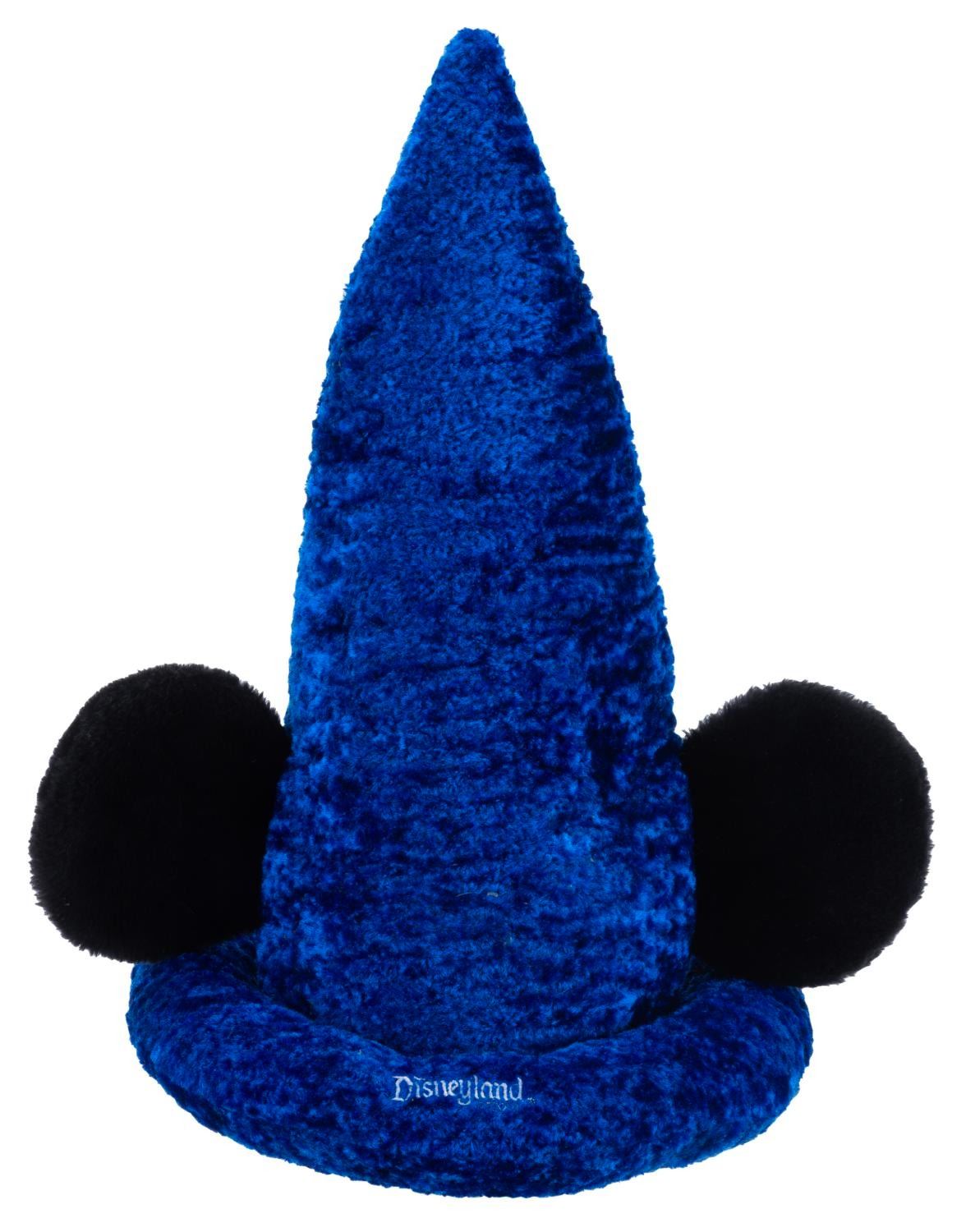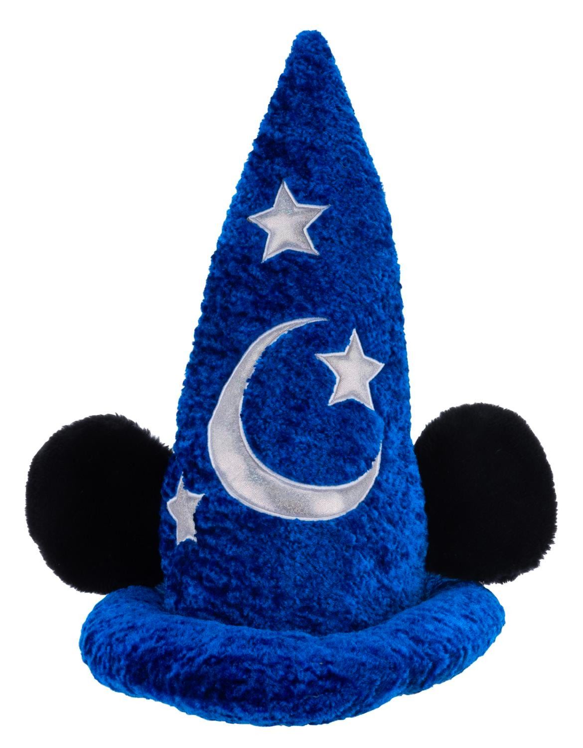 (Disney Parks, 2000) A plush souvenir Sorcerer’s Apprentice hat from one of the Disney Parks. Labeled a size Adult and measuring 15 " tall and 11.5 " in diameter, the hat is in very good condition with light wear.