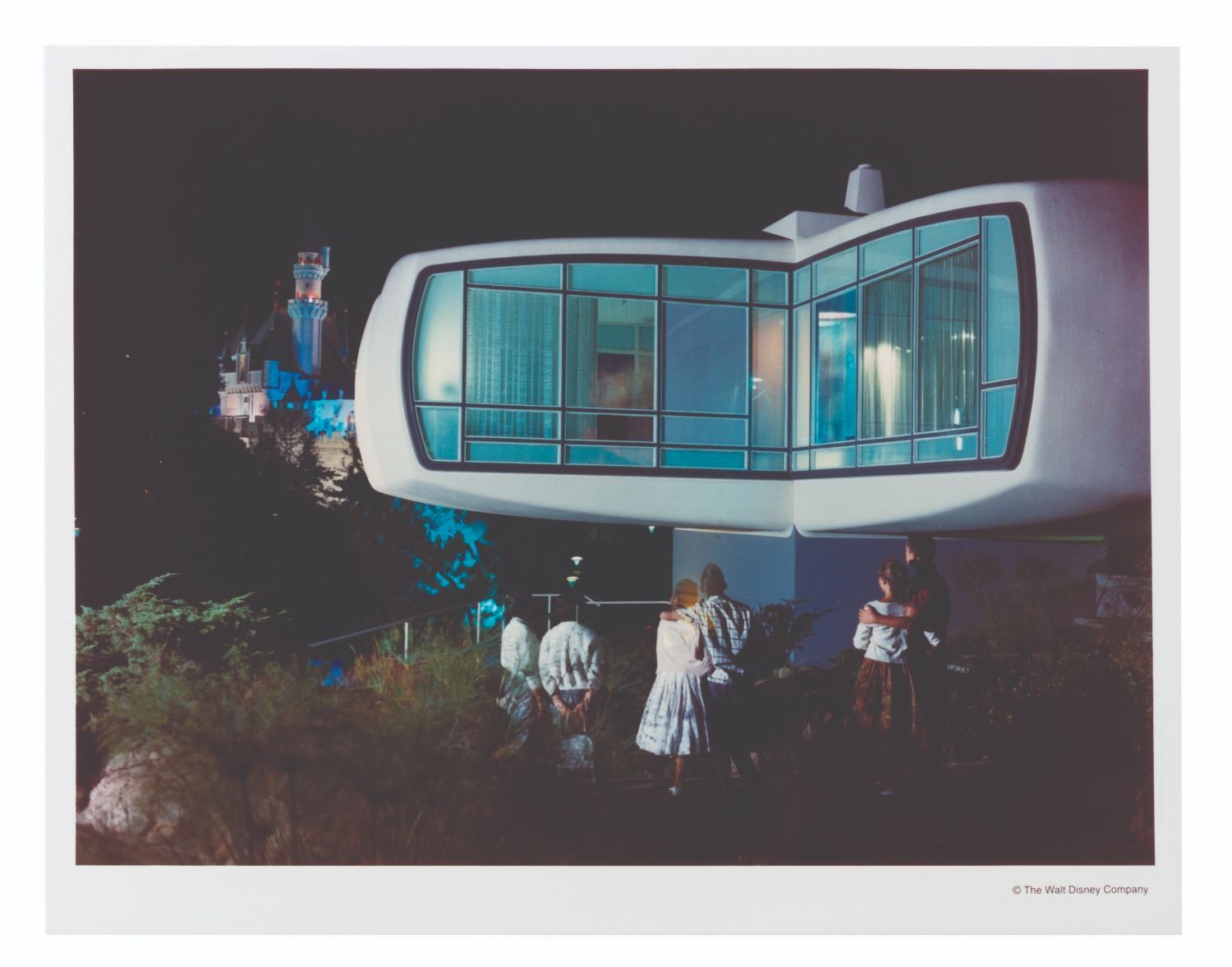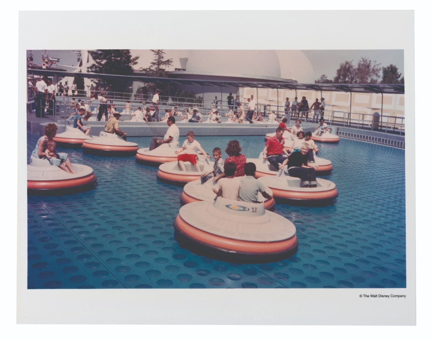(Disneyland, 1957-67) A pair of early Tomorrowland photographs featuring Monsanto's House of the Future and the Flying Saucers attraction. These prints were made at the Disney Studio in the 1980s or early 1990s. Measuring 8 " x 10.25 " overall, the photos display in very good condition with surface scratches.