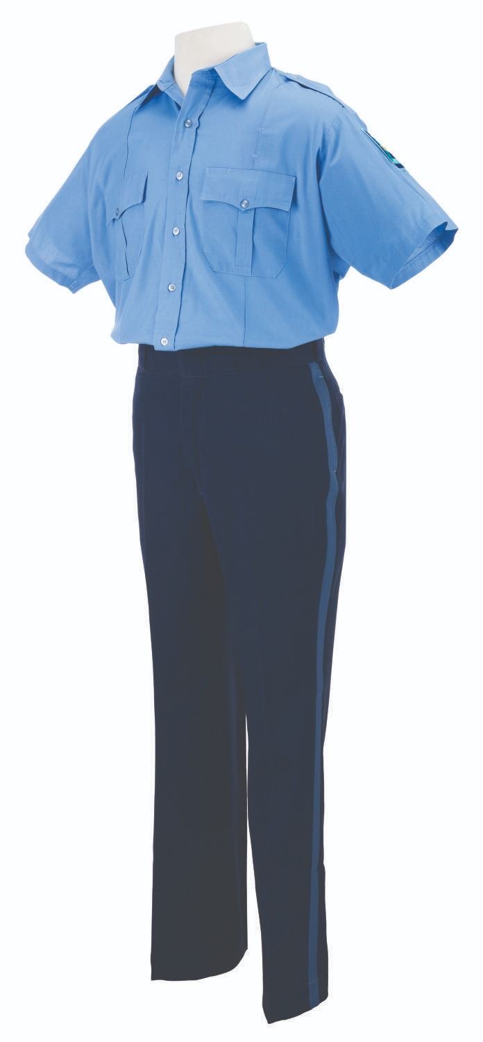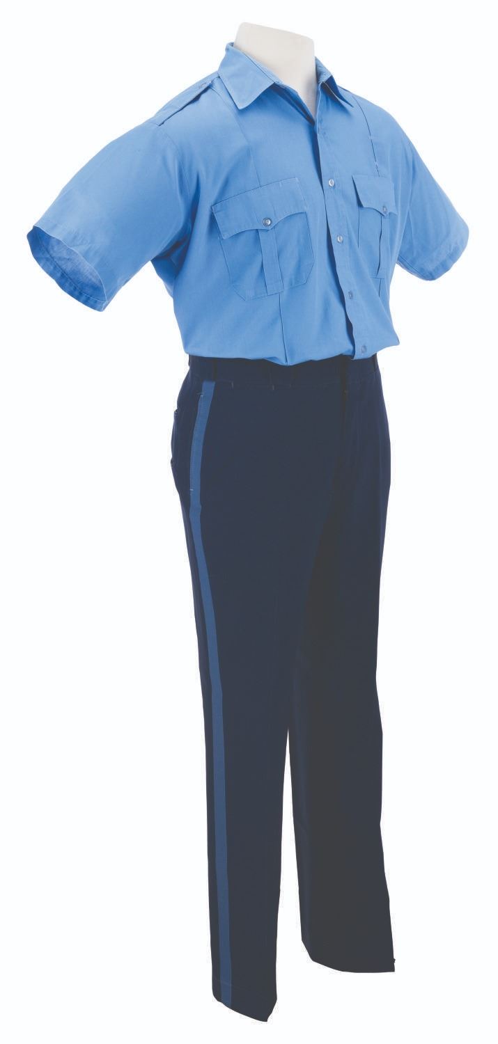 (Walt Disney World, 1990s–2000s) A Disney Security uniform worn by Cast Members at the Walt Disney World Resort. The shirt is labeled a size XL, and the pants are 36 "x34 ", both in very good condition with light discoloration, fraying, wear, and stains on the collar.