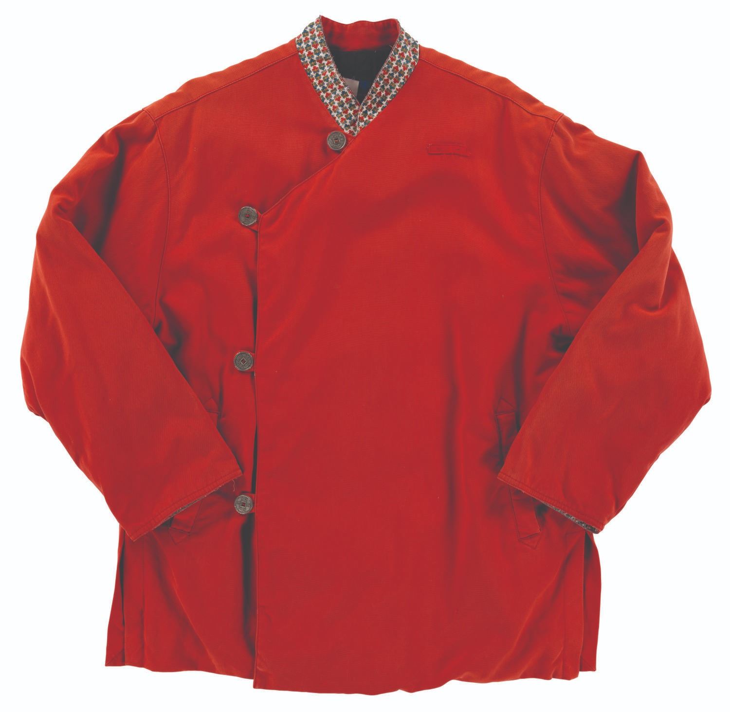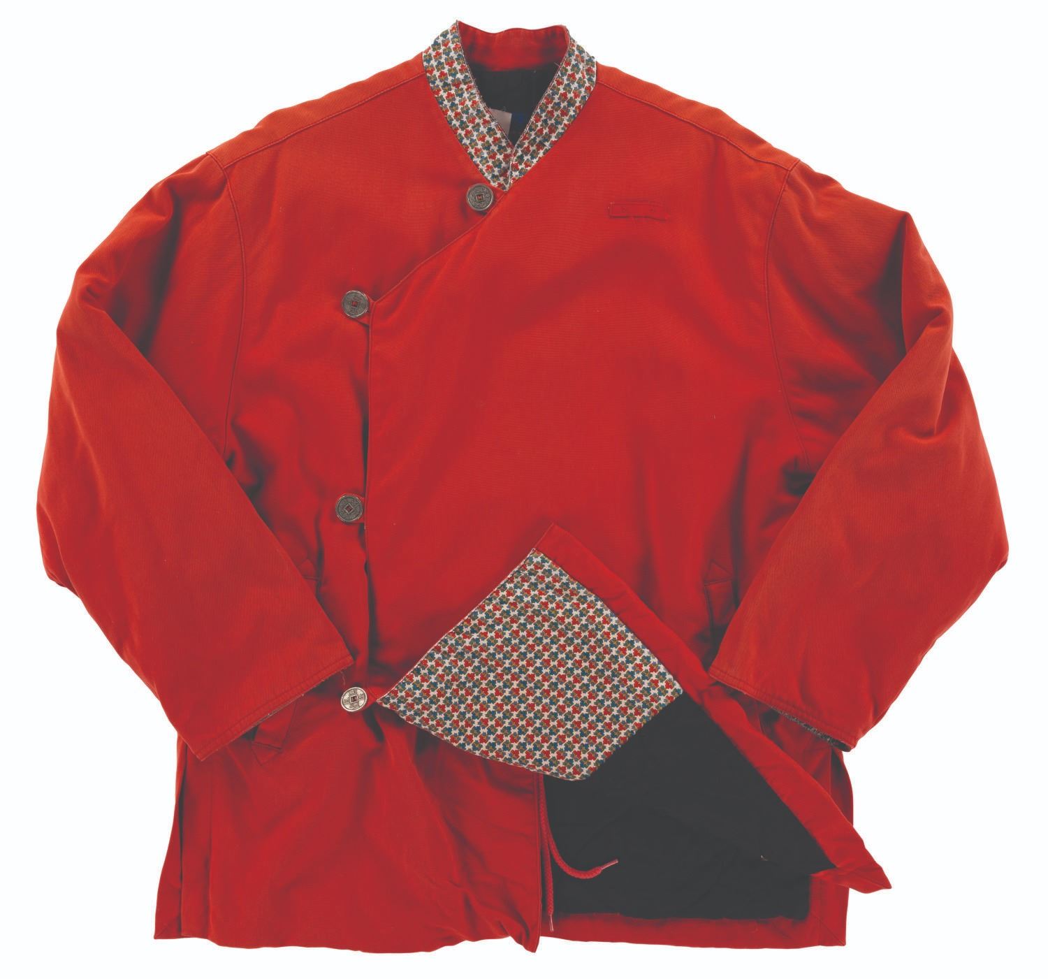 (Disney's Animal Kingdom, 2006) A costume coat worn by Cast Members working the Kali River Rapids attraction in the Park's Asia land. Labeled a size Large and dated "Sept. 2006, " the coat is in good condition with light pilling, fraying, discoloration, and wear from Park use.