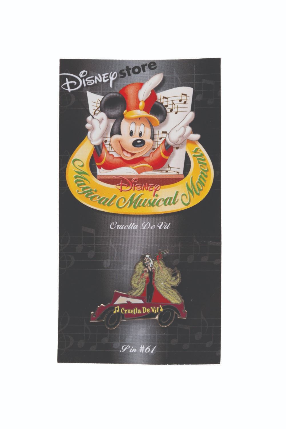 (Disney, 2002) A pin of "One Hundred and One Dalmatians " villain Cruella de Vil, pin #61 in the Magical Musical Moments series. The pin is on its original card and in very good condition with light wear and discoloration.
