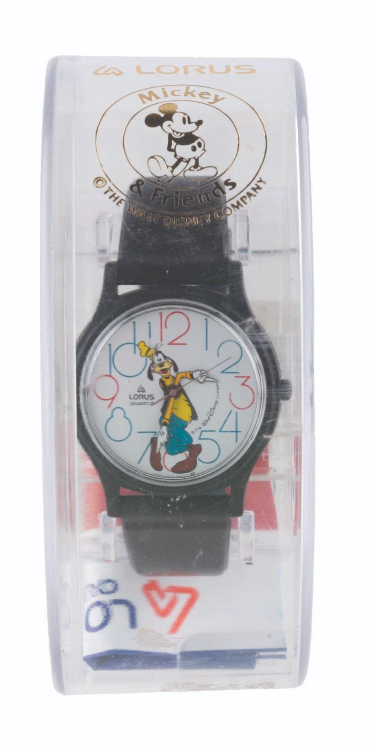 (Lorus, 1990s) A Goofy Quartz wristwatch by Lorus. Measuring 1.5 " in diameter with an 8.5 " band, the watch is in fine, as-new condition with the original box, requiring a battery and possibly service to function.