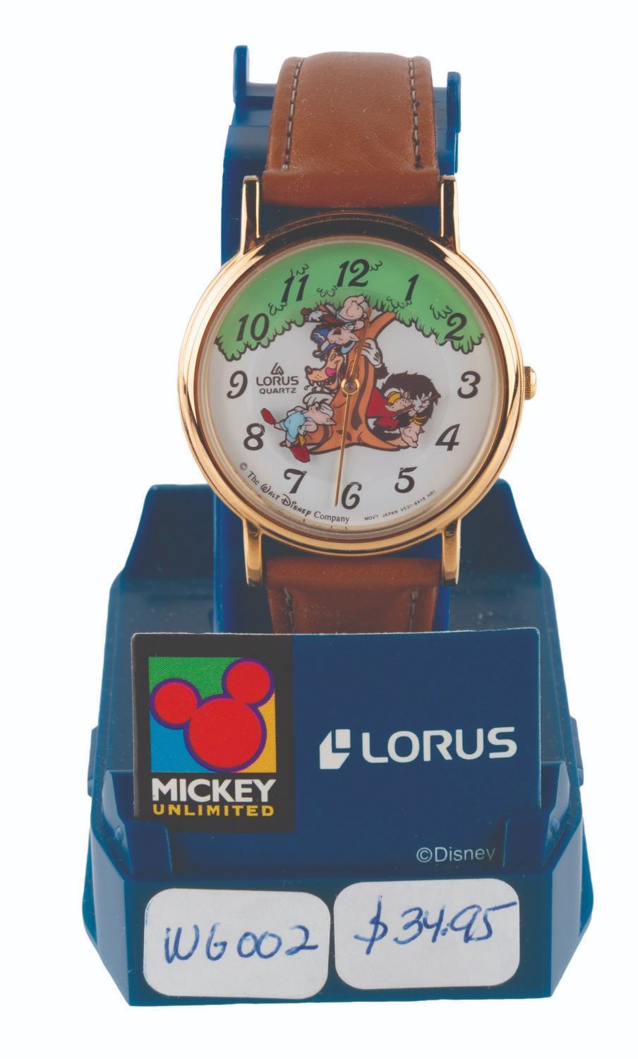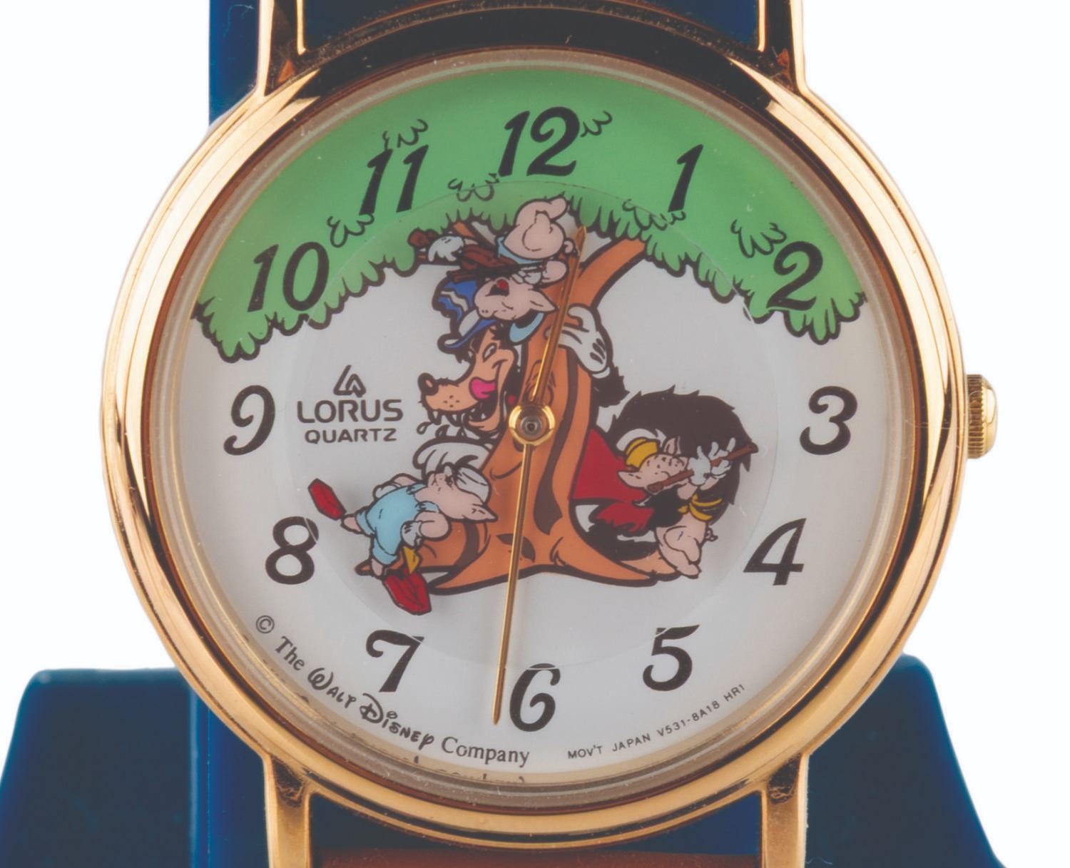 (Lorus, 1990s) A Mickey Unlimited "Three Little Pigs " Quartz wristwatch by Lorus. Measuring 1.5 " in diameter with a 9 " band, the watch is in fine, as-new condition with the original box, requiring a battery and possibly service to function.