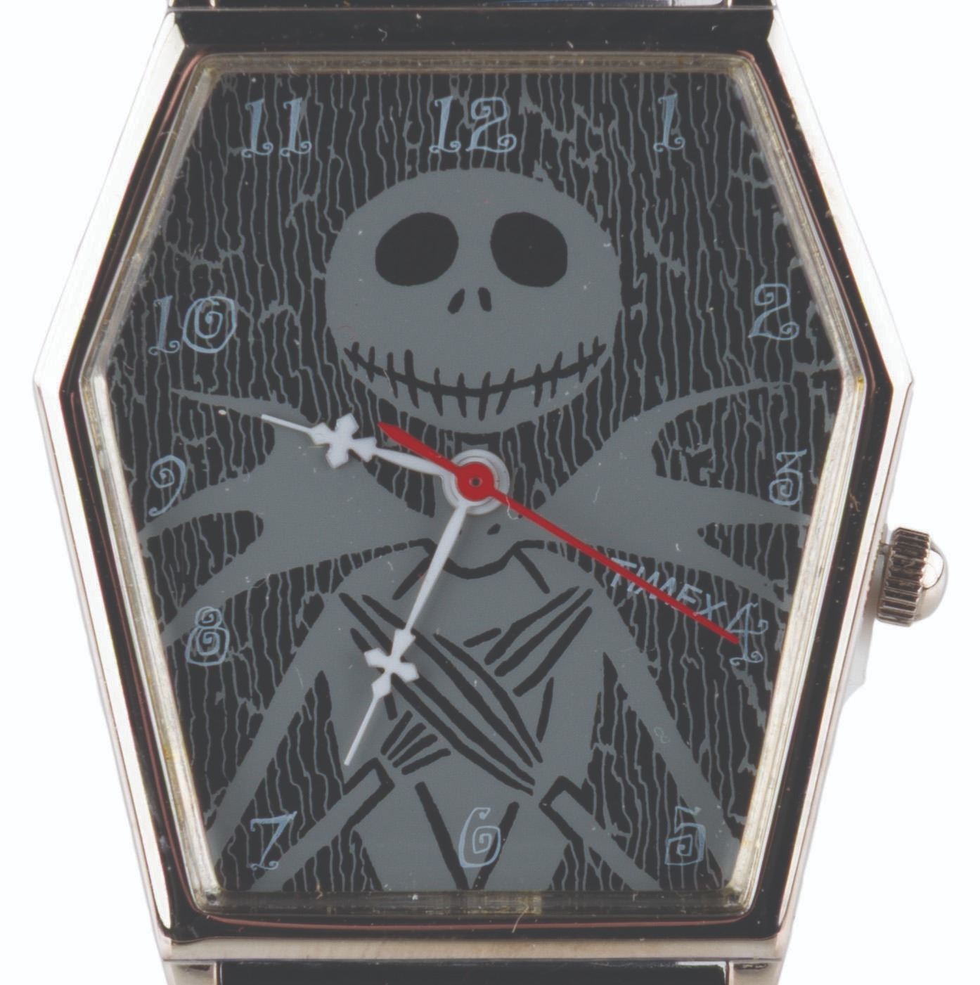 (Timex, 1990s) A coffin-shaped "Nightmare Before Christmas " watch featuring the Pumpkin King himself. The watch is in fine condition, requiring a battery and possibly service to function.