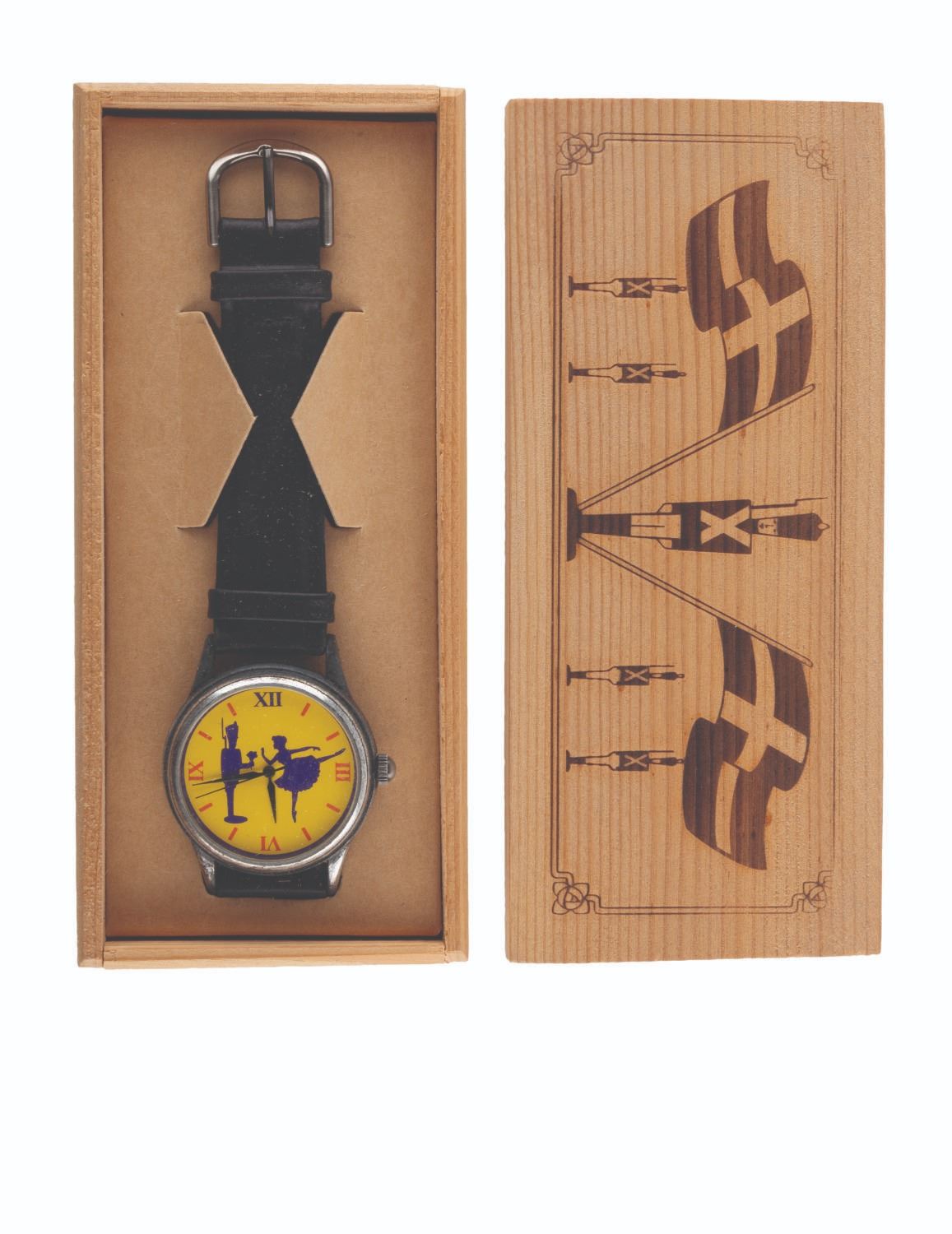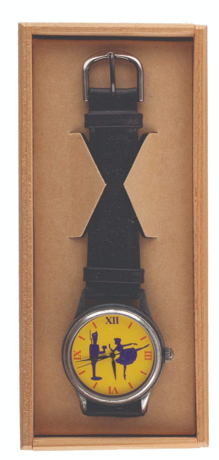 (Disney, 1999) A Steadfast Tin Soldier wristwatch in its original wooden box, given to the "Fantasia Continued" (Fantasia 2000) crew as a Fourth of July present. The watch and box are in fine condition, requiring a battery and possibly service to function.