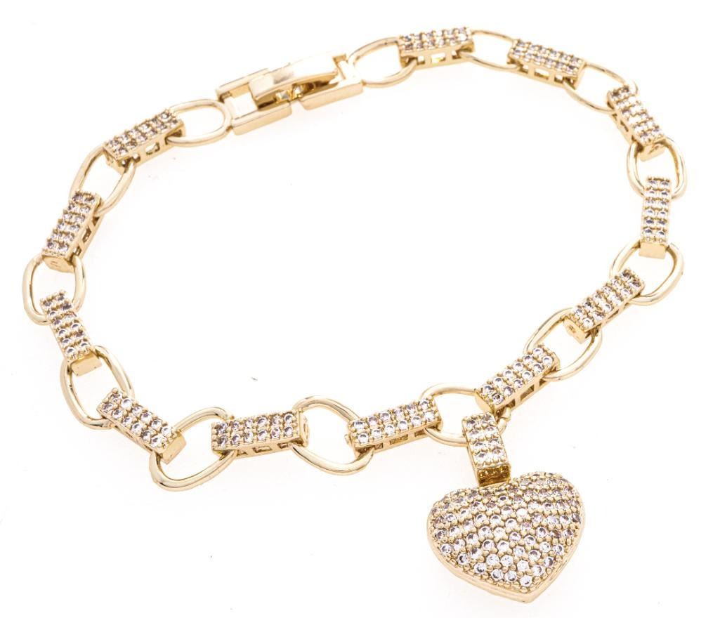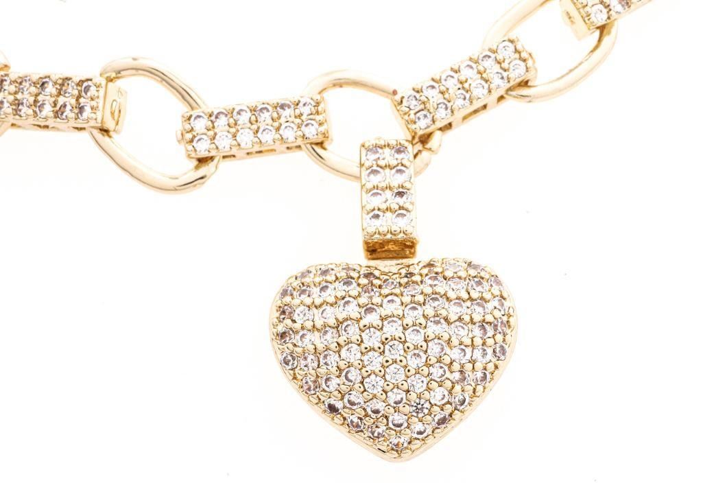 18kt BGO Rolo Link w/ Bead Set Spacer Bars, Puffed Heart Tag, 7.5" - 130572/7.5 - 18BRA~102 Ð 18BRA-102