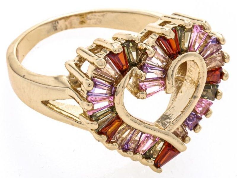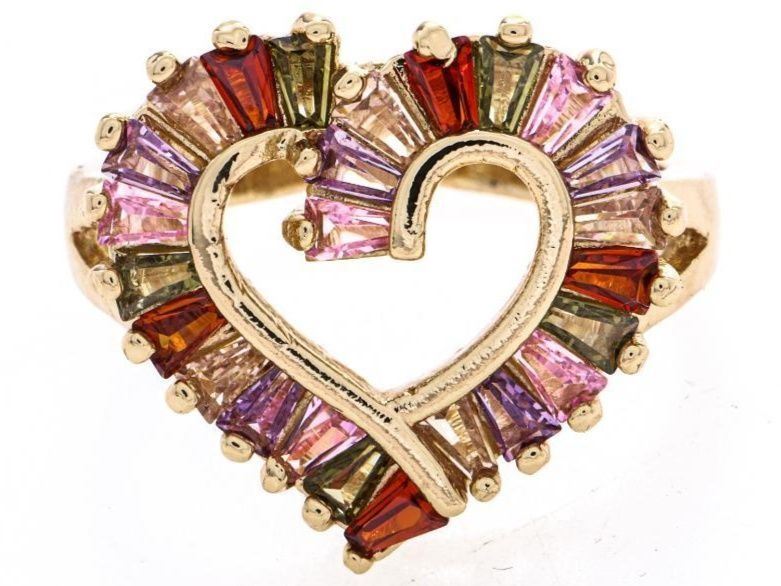 Lot 261 18kt Oro Laminado Heart Shape Ring Multi Colour Ba