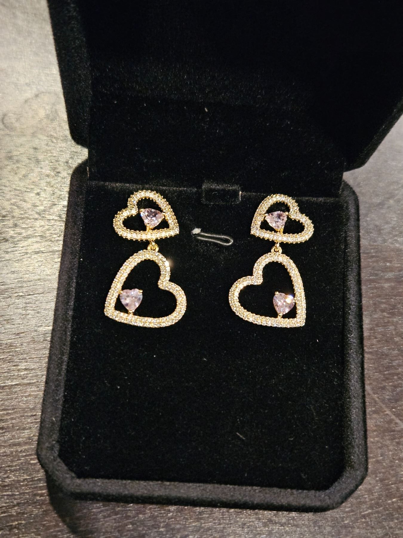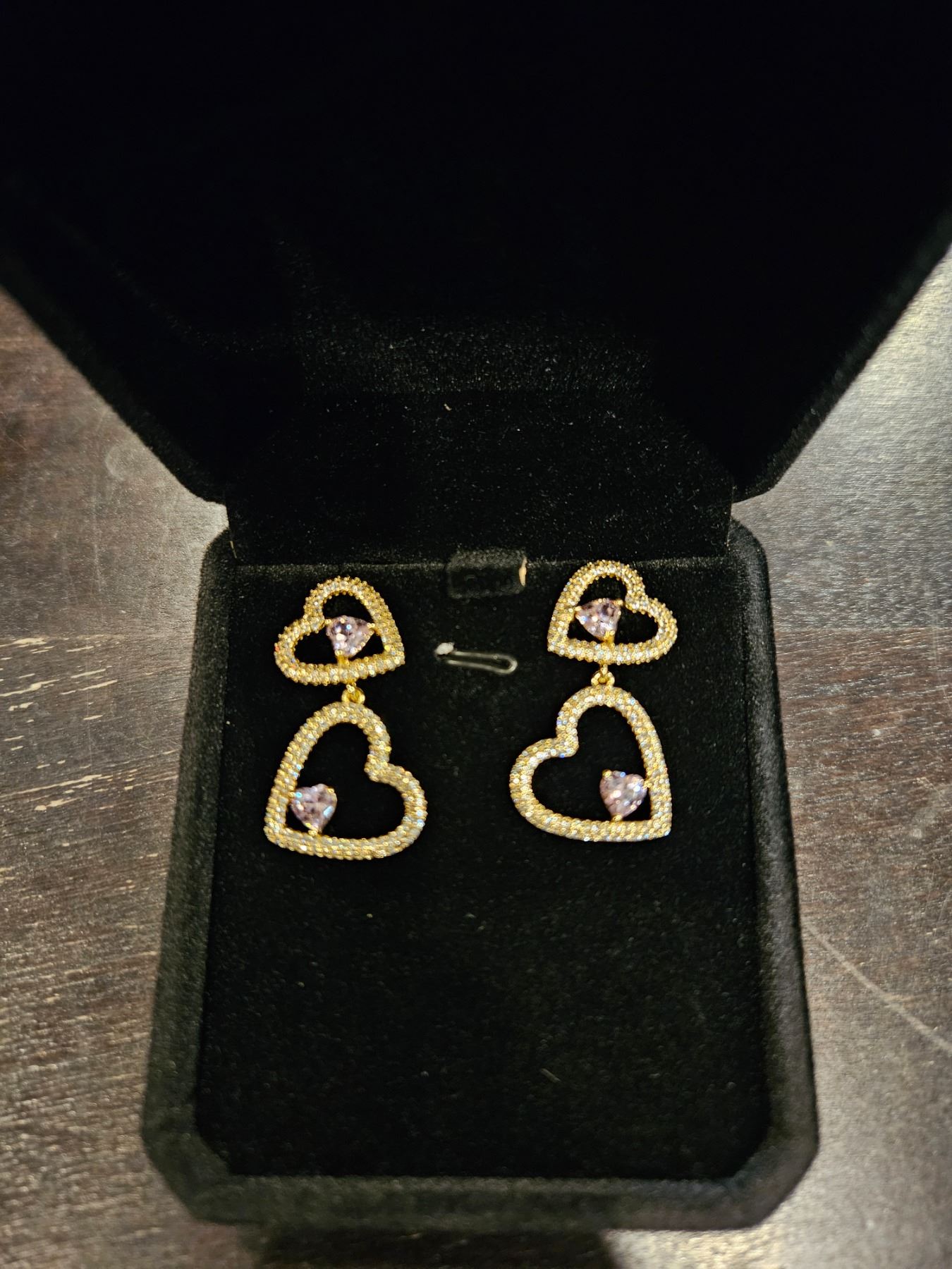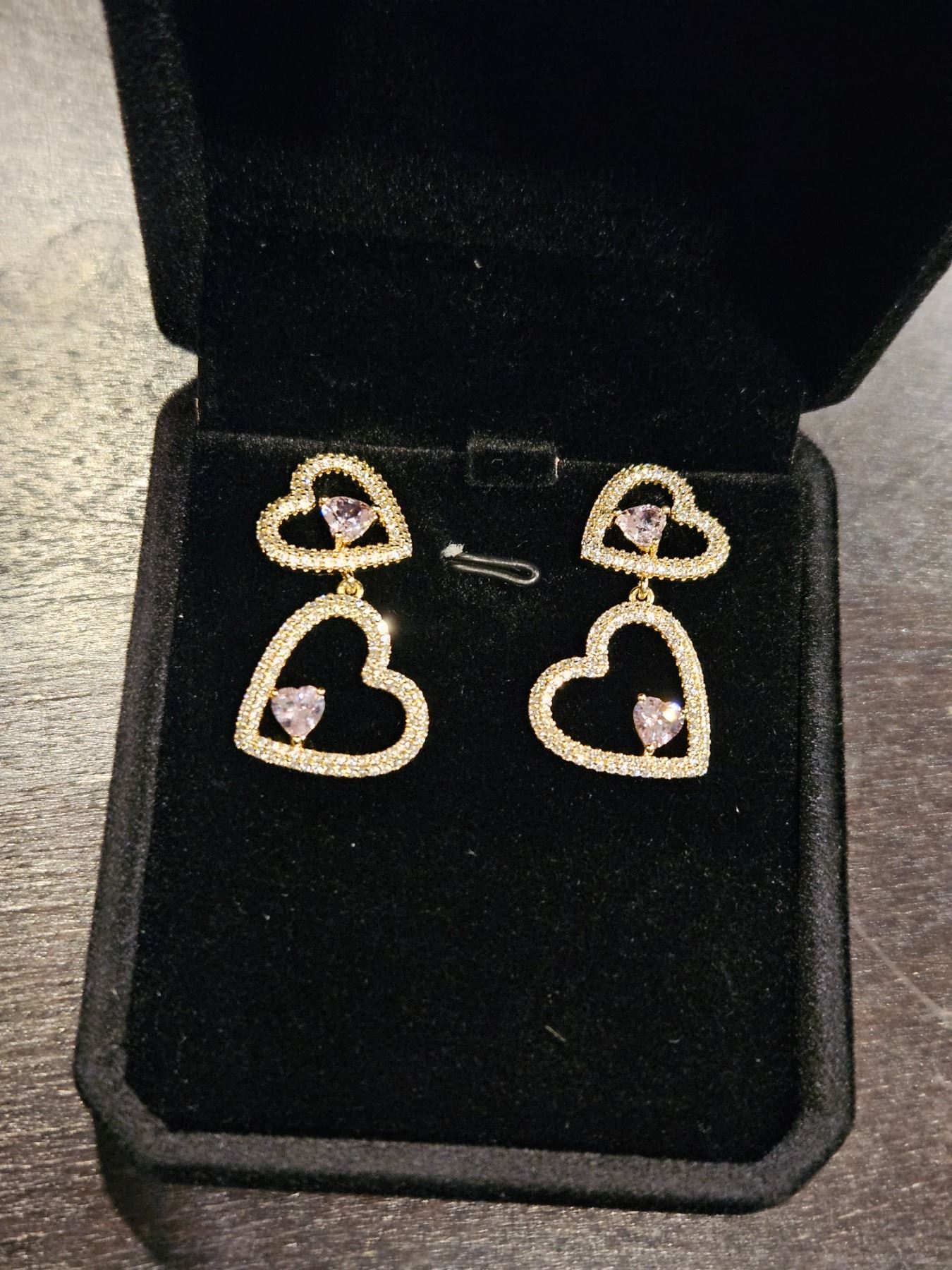 Lot 310a 1.0ct Heart cut pink dangle earrings