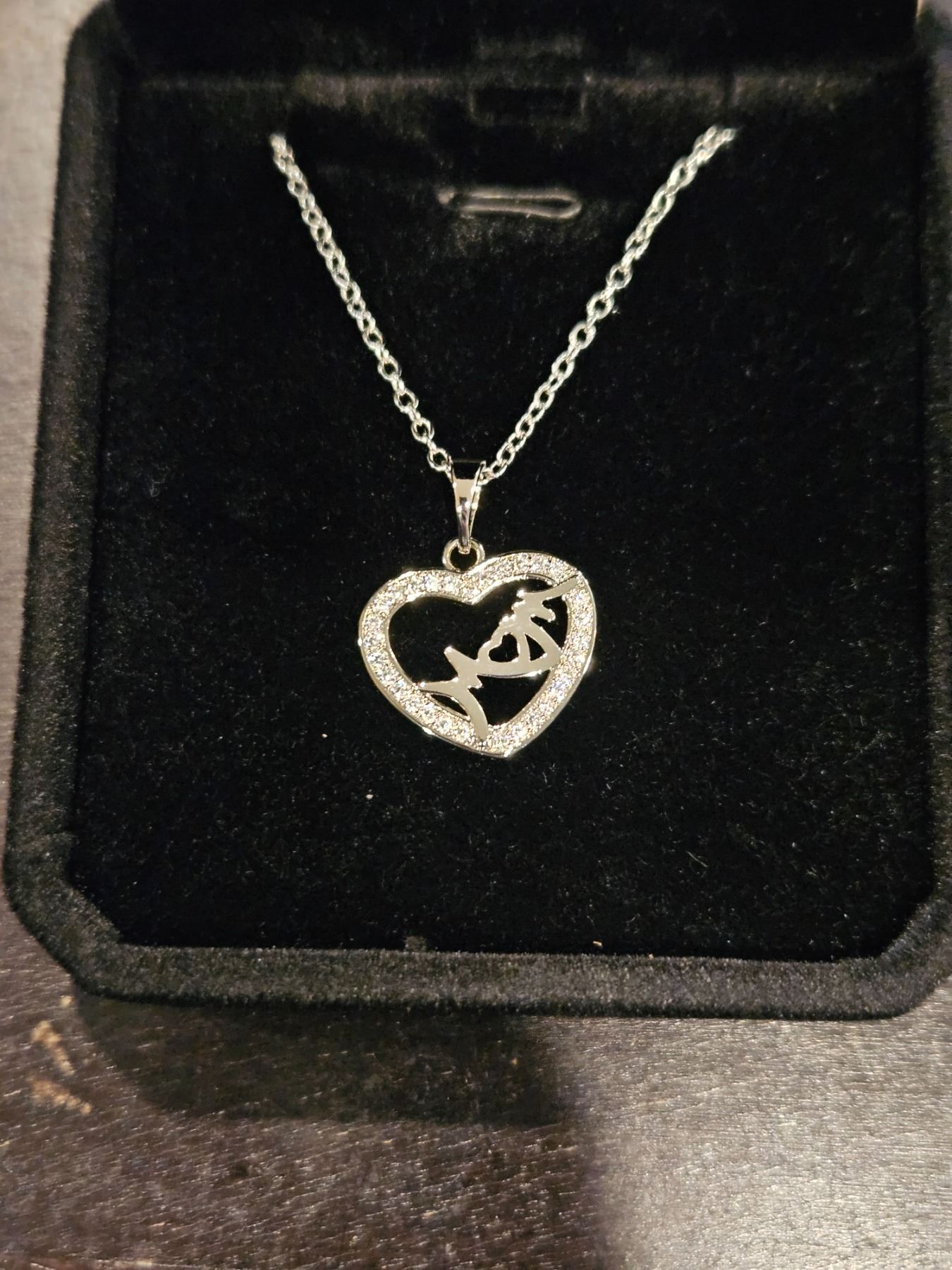 Lot 360a 20.00mm Mom heart necklace 16-18" chain