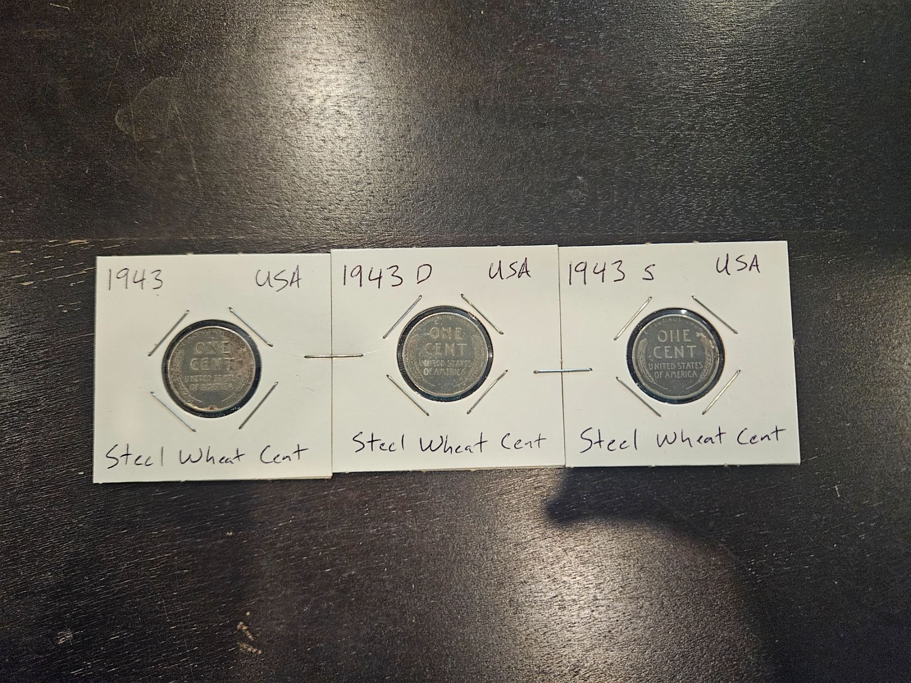 Lot 150i 3x 1943 USA Sttel wheat 1cent coins
