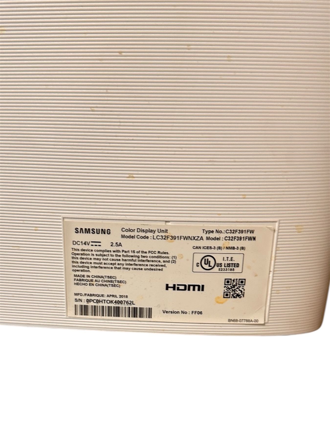 Samsung 32" Curved Monitor Model LC32F391FW (Not Tested - Missing Power Supply)