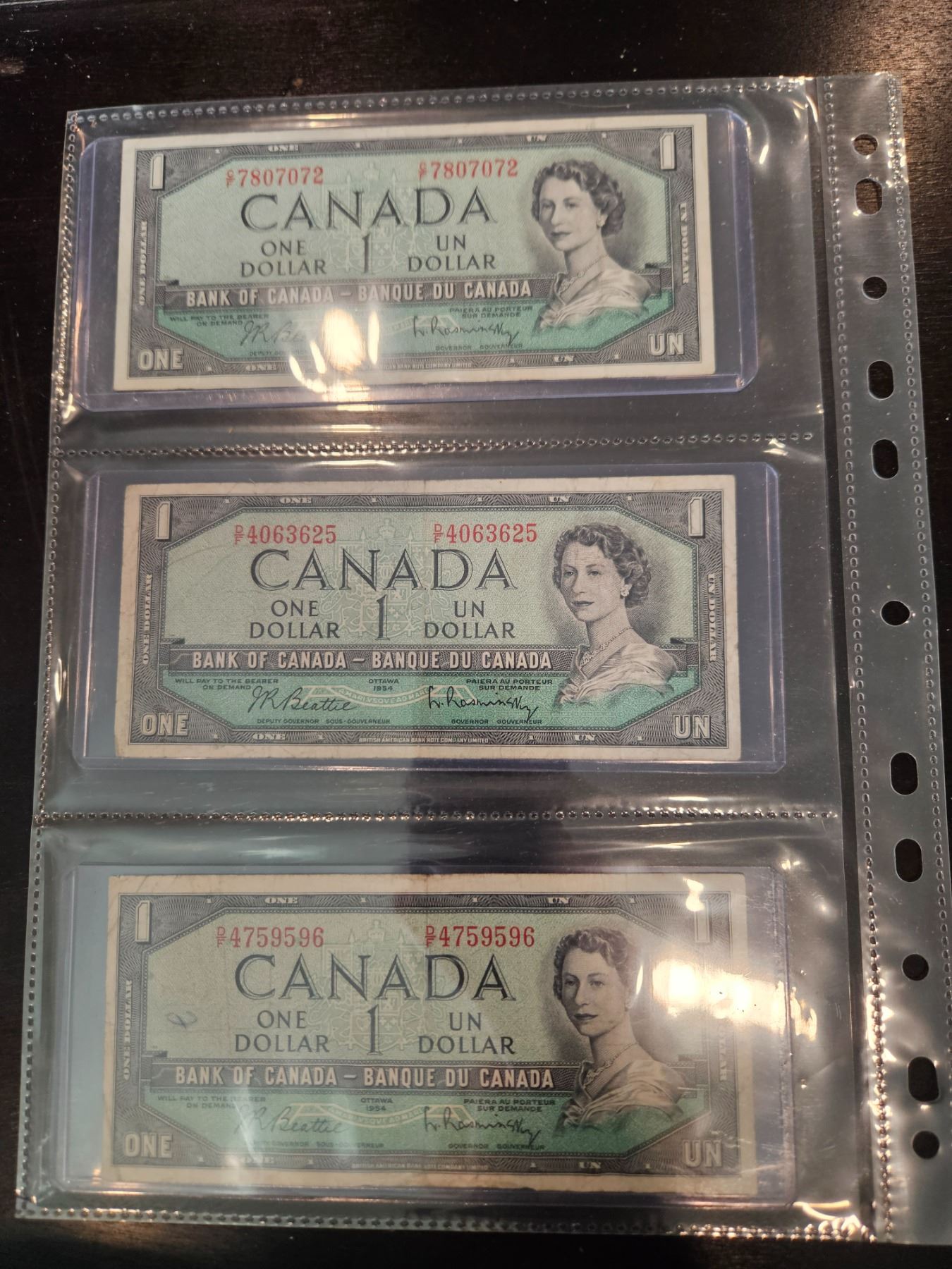 3x 1954 Canadian $1 bills