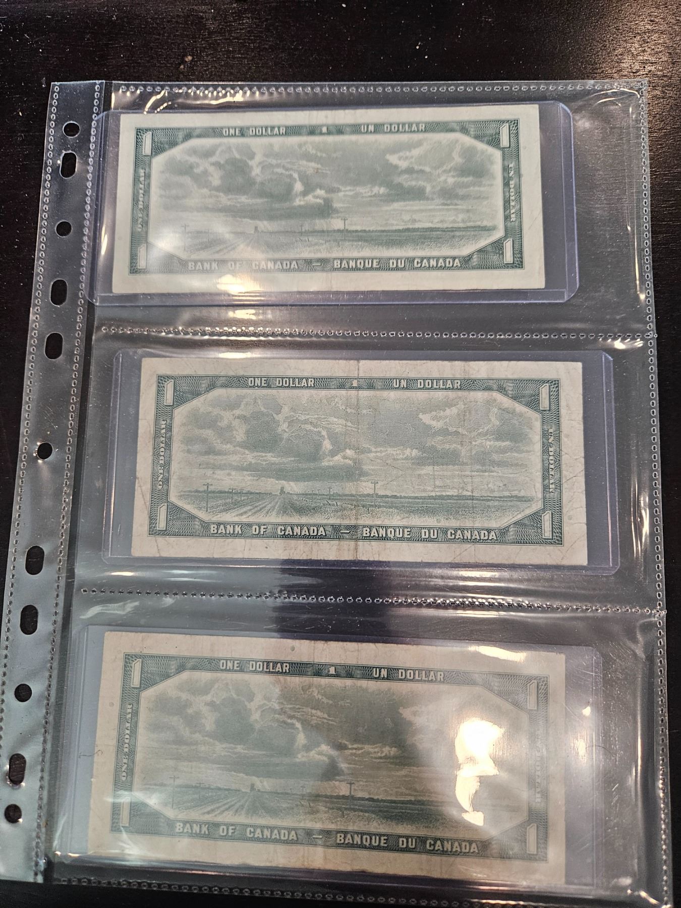 Lot 670a 3x 1954 Canadian $1 bills