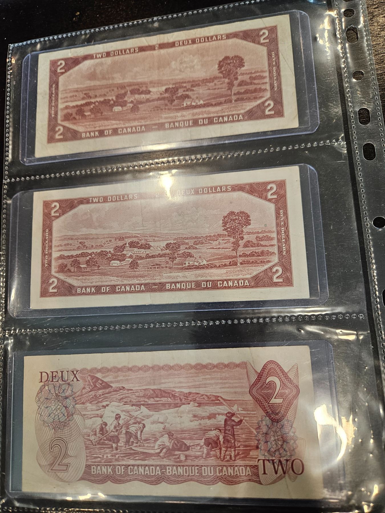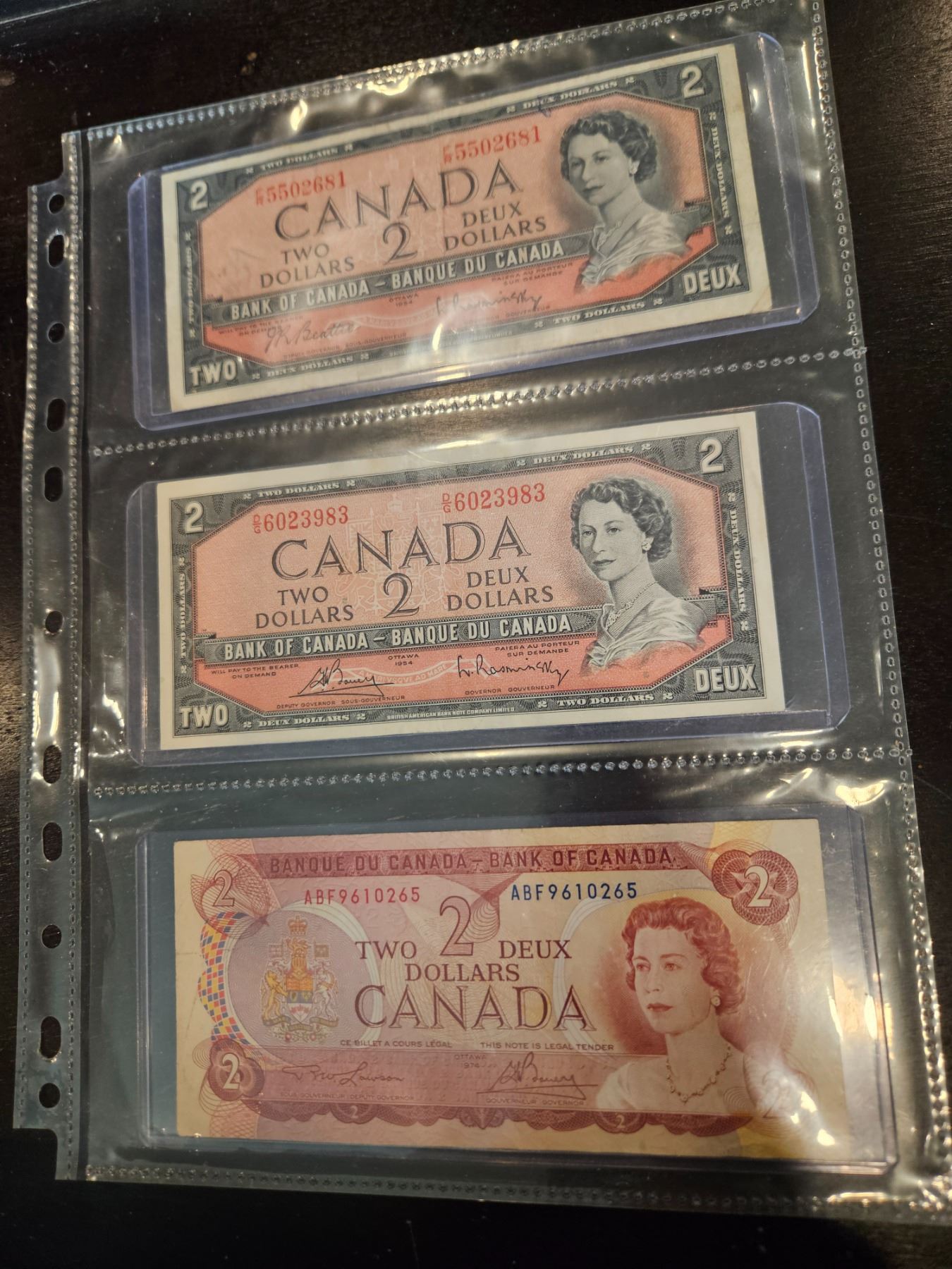 Lot 810a 2x 1954 & 1x 1974 Canadian $2 bills